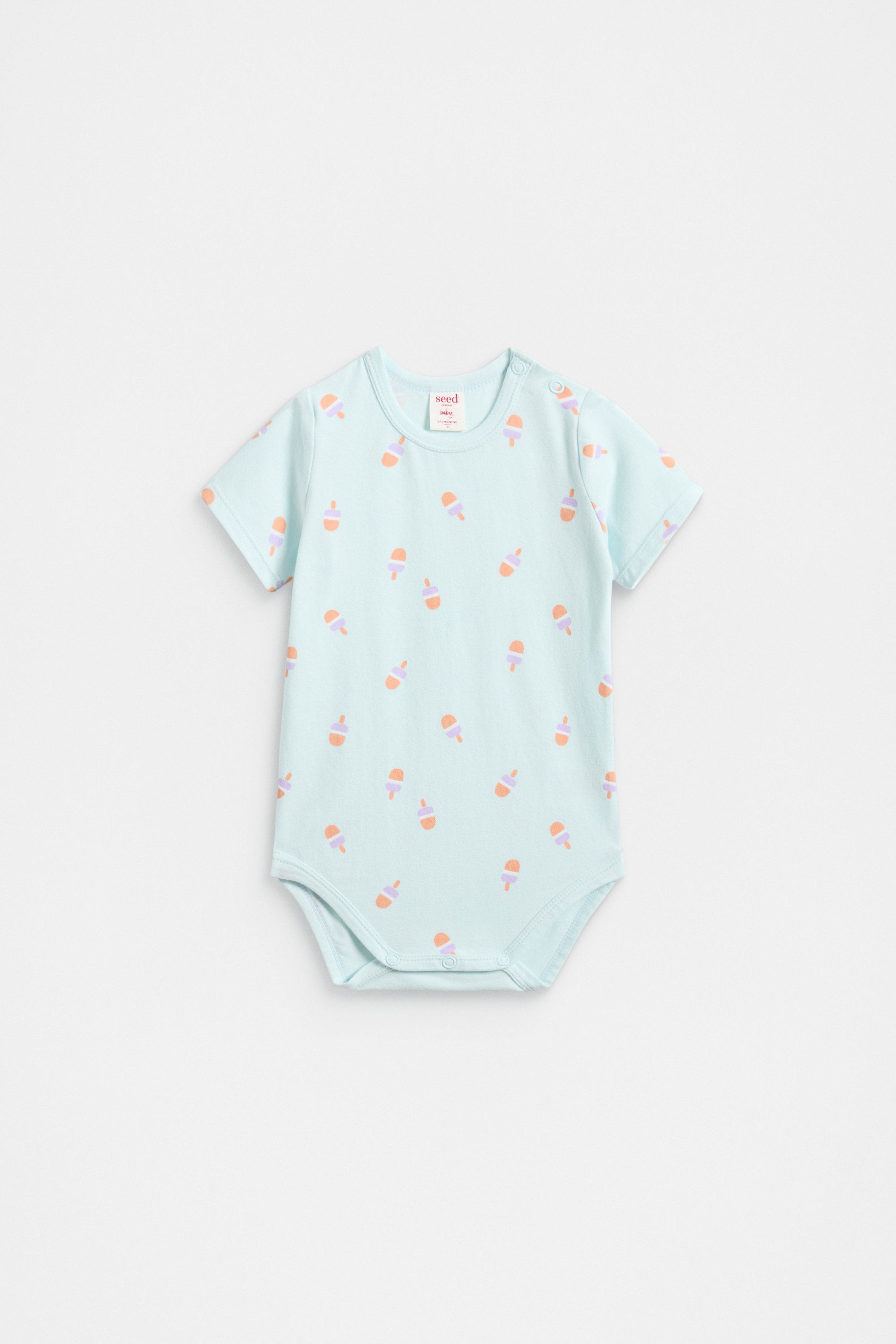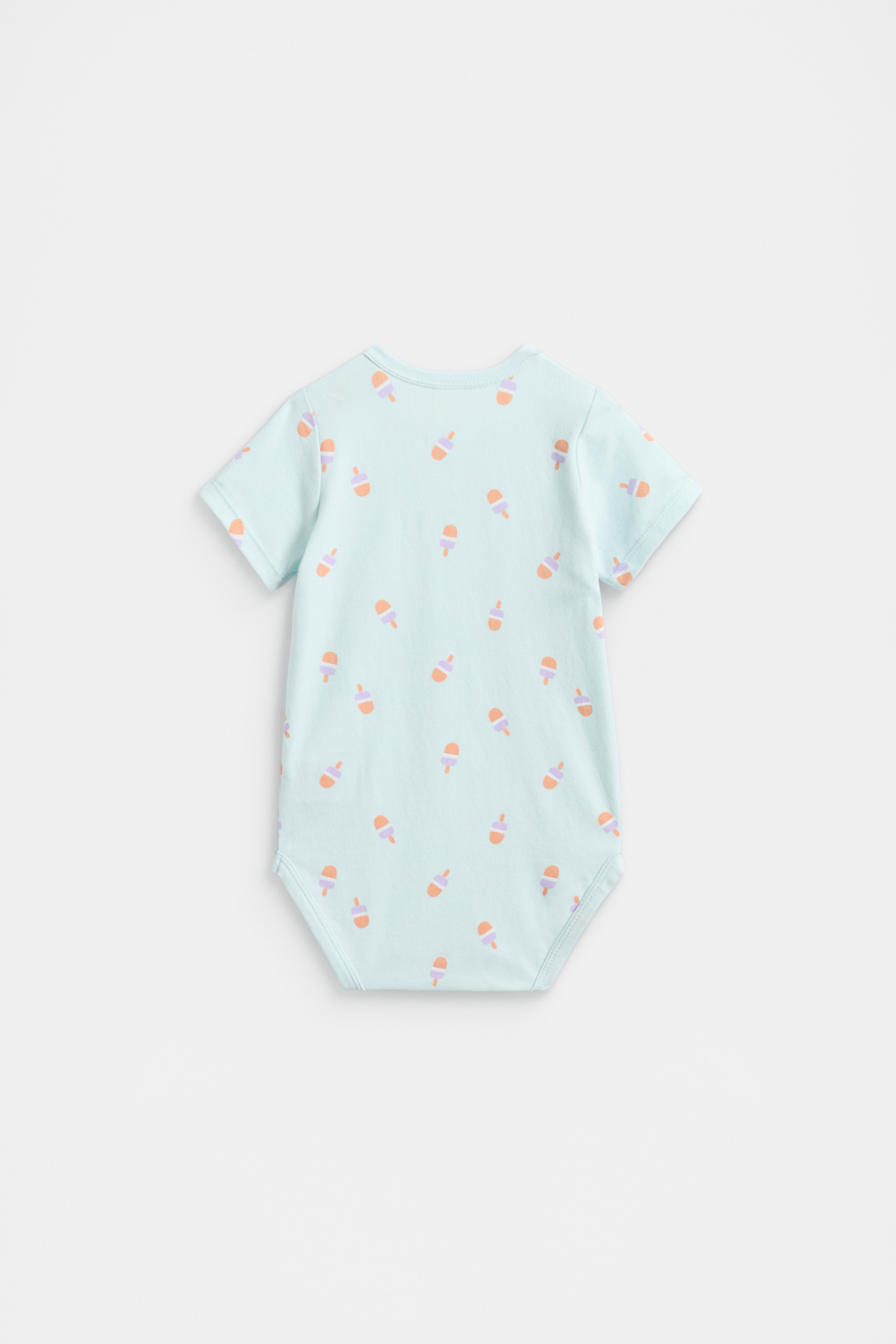 Made from an ultra-soft cotton blend and the perfect amount of stretch, this bodysuit is a must-have for any newborn. It's a short-sleeved style with a round neck and an all-over ice block design. It fastens with snaps at the shoulder and gusset for quick and easy changes.
