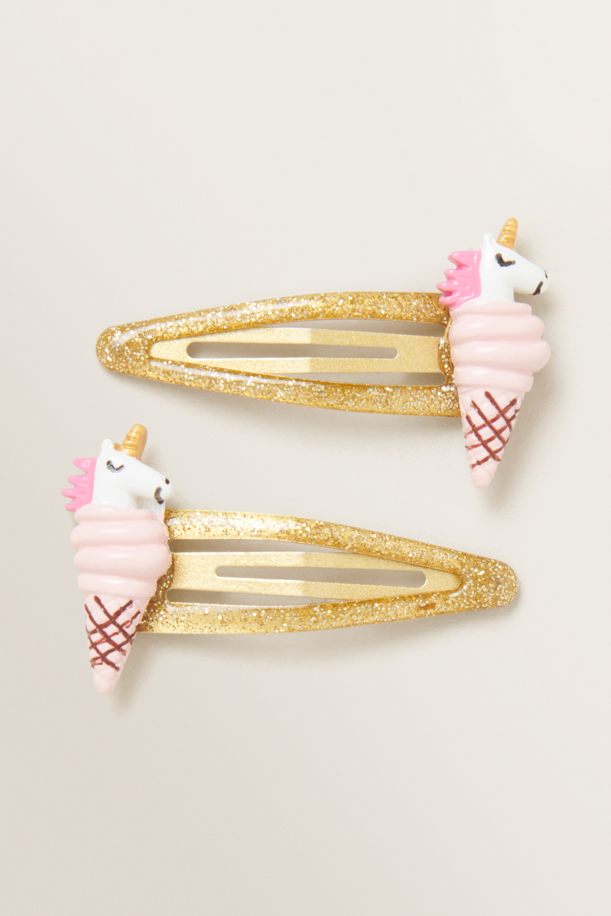 Featuring a bold unicorn motif, this Ice Cream Snap Pair features secure snap closures.
