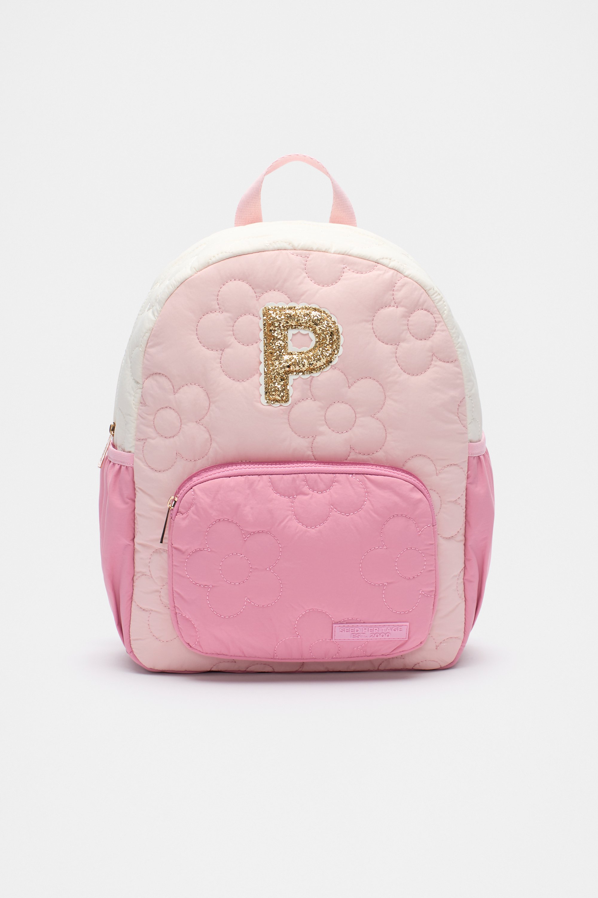 Convenient, cool and personalised just for her, this backpack is set to be a new everyday favourite. Generously sized, it features a front zip pocket, two elasticated side pockets, a top handle and adjustable shoulder straps. For that little something extra, it also features a sparkly sequin initial patch, gold tone hardware and sweetly embroidered details.