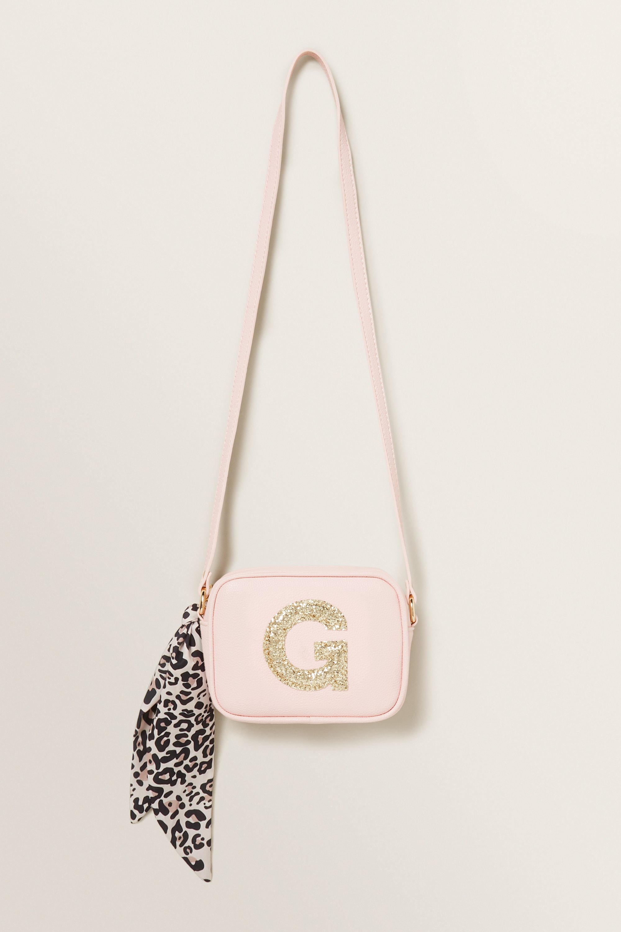 Personalise her style this season, with this glammed-up Initial Bag. Featuring a long shoulder strap for easy wearing, it is detailed with a zip-top closure, sparkly initial and a silky-feel ocelot print scarf. Available in all letters, this carry-all is designed with one main interior pocket to protect all precious goods. Made from a PU/Polyester, this Initial Bag is available in one size.