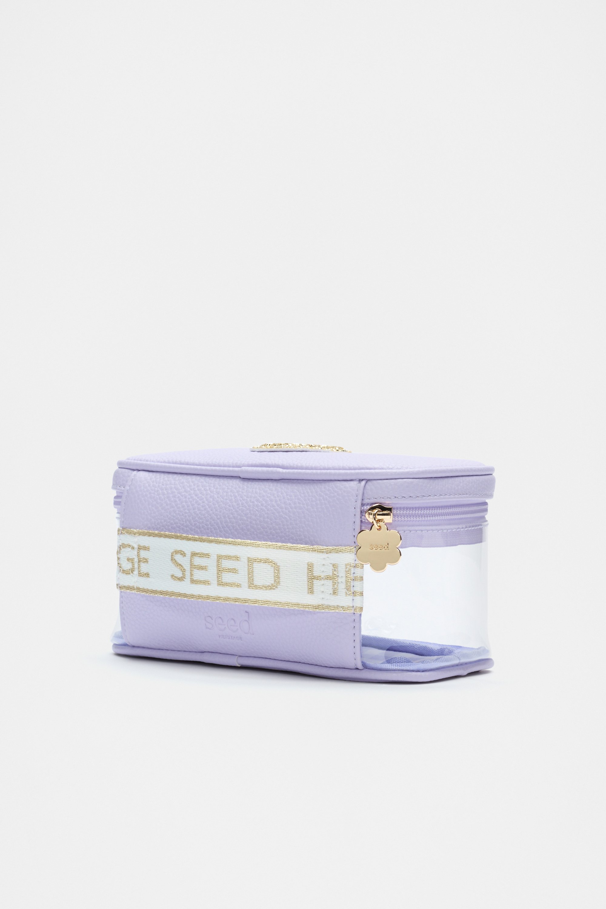 Ideal to keep her things together, this cosmetics bag is detailed with a glitter initial making it the perfect personalised gift. It features a clear design with a zipped lid closure, soft gold hardware and an internal gingham design. It also has a branded carry handle