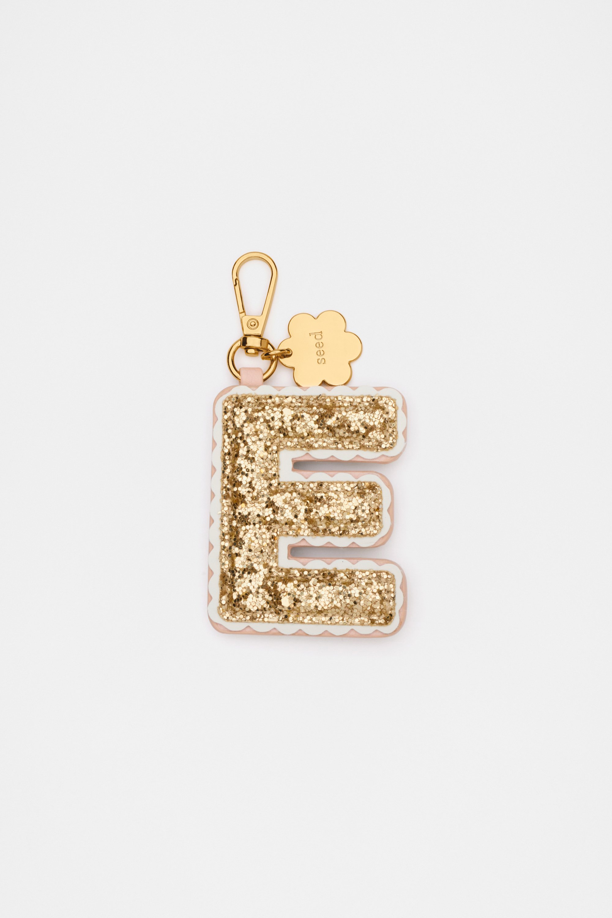 Add a personal touch with this glittery initial keyring. With a sparkly finish and a scallop trim, it's sure to be a favourite. It also features a flower charm.
