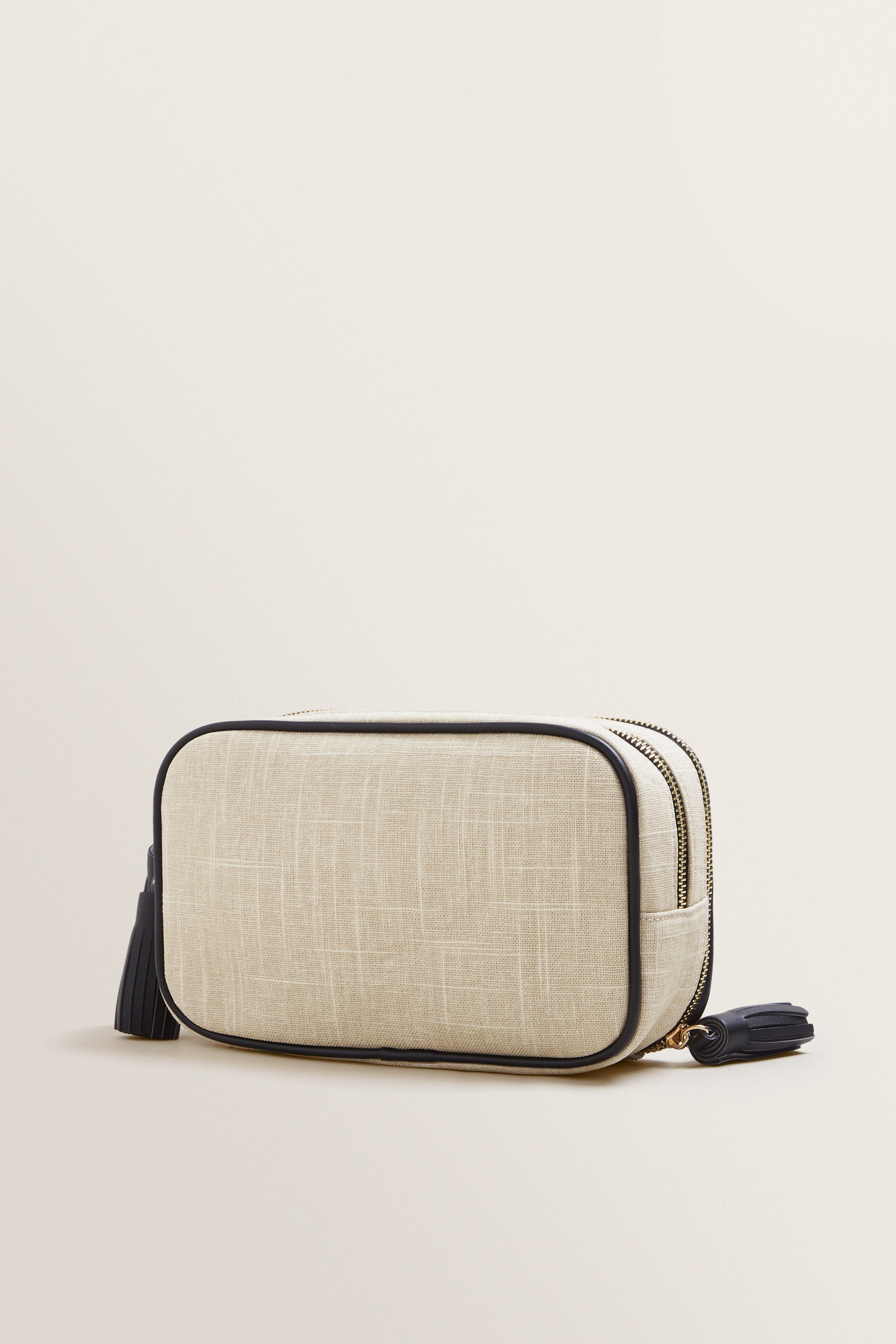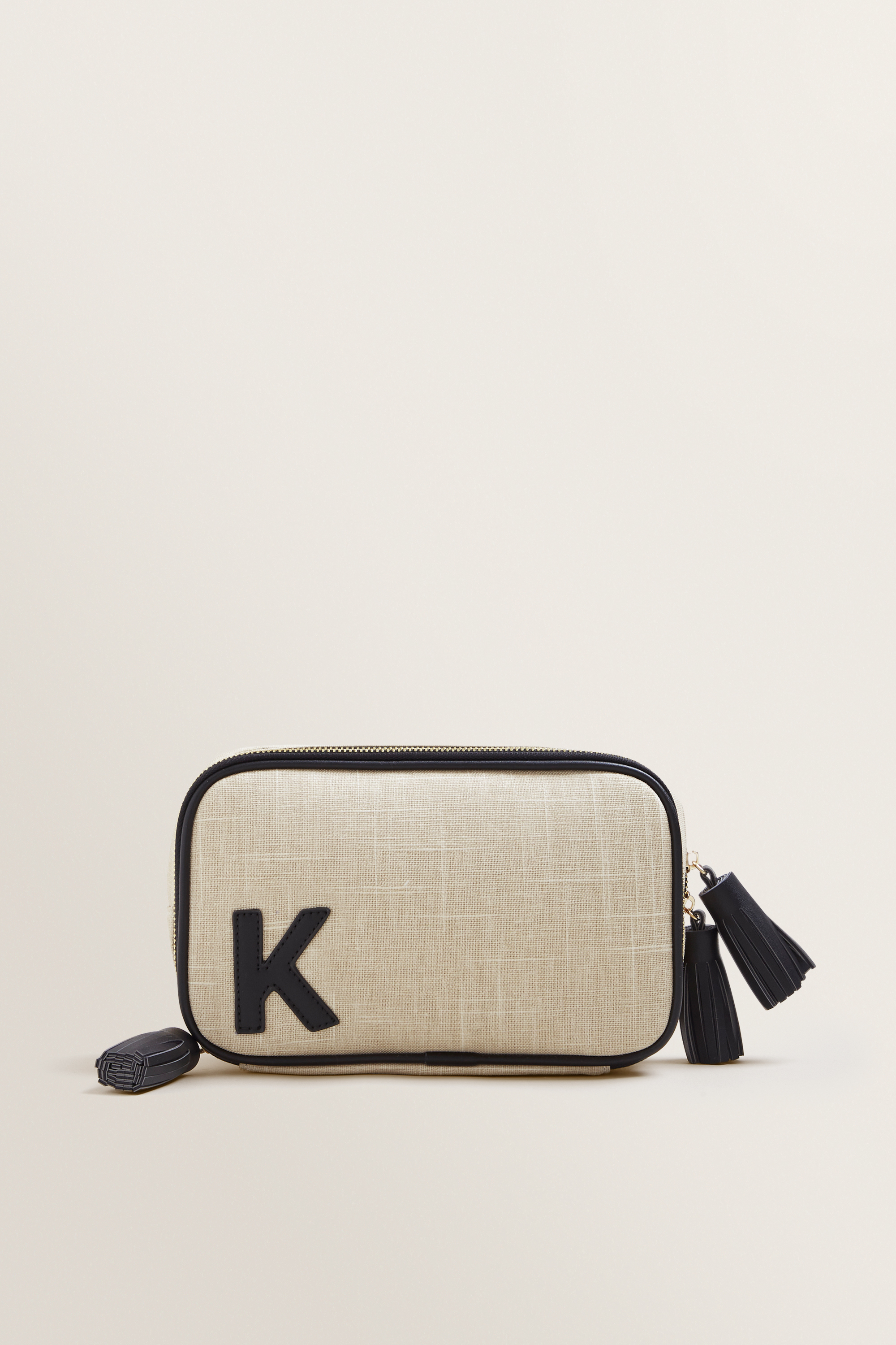 Featuring a canvas exterior, this Initial Makeup Case is detailed with contrasting PU trim and a secure zip closure.