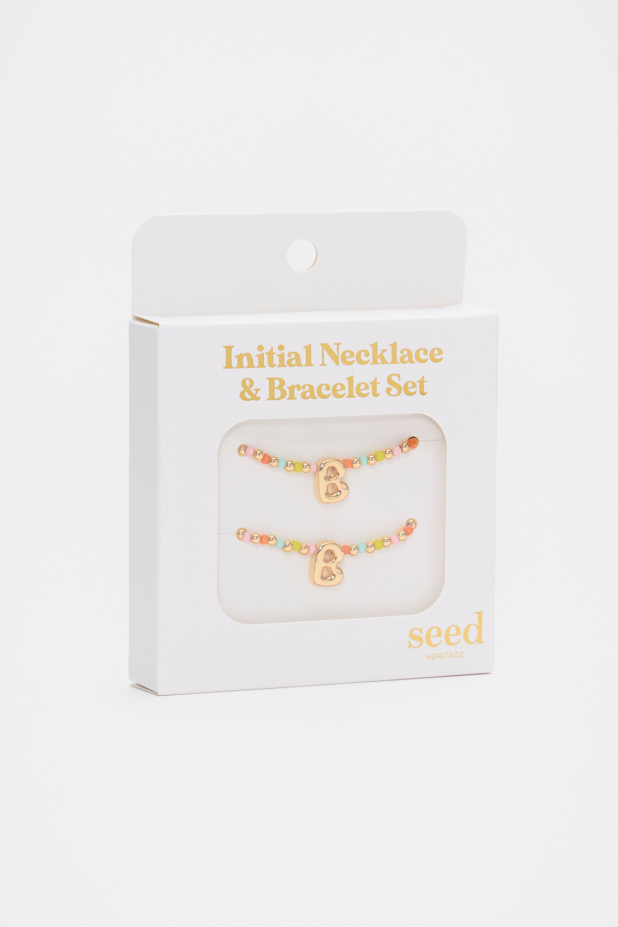 Personalised and sweet, this jewellery set is one she'll adore. It features a matching necklace and bracelet with a beaded design and initial detail. On a stretchy elastic, it's easy to take on and off. This product is not a toy and is not suitable for children three years and under.