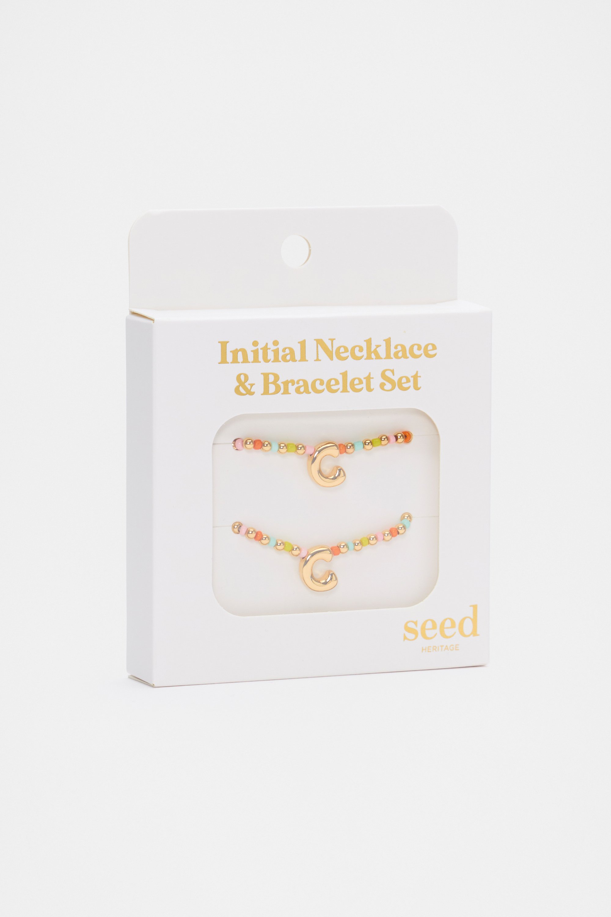 Initial Necklace And Bracelet Set  C  hi-res Initial Necklace And Bracelet Set  C  hi-res