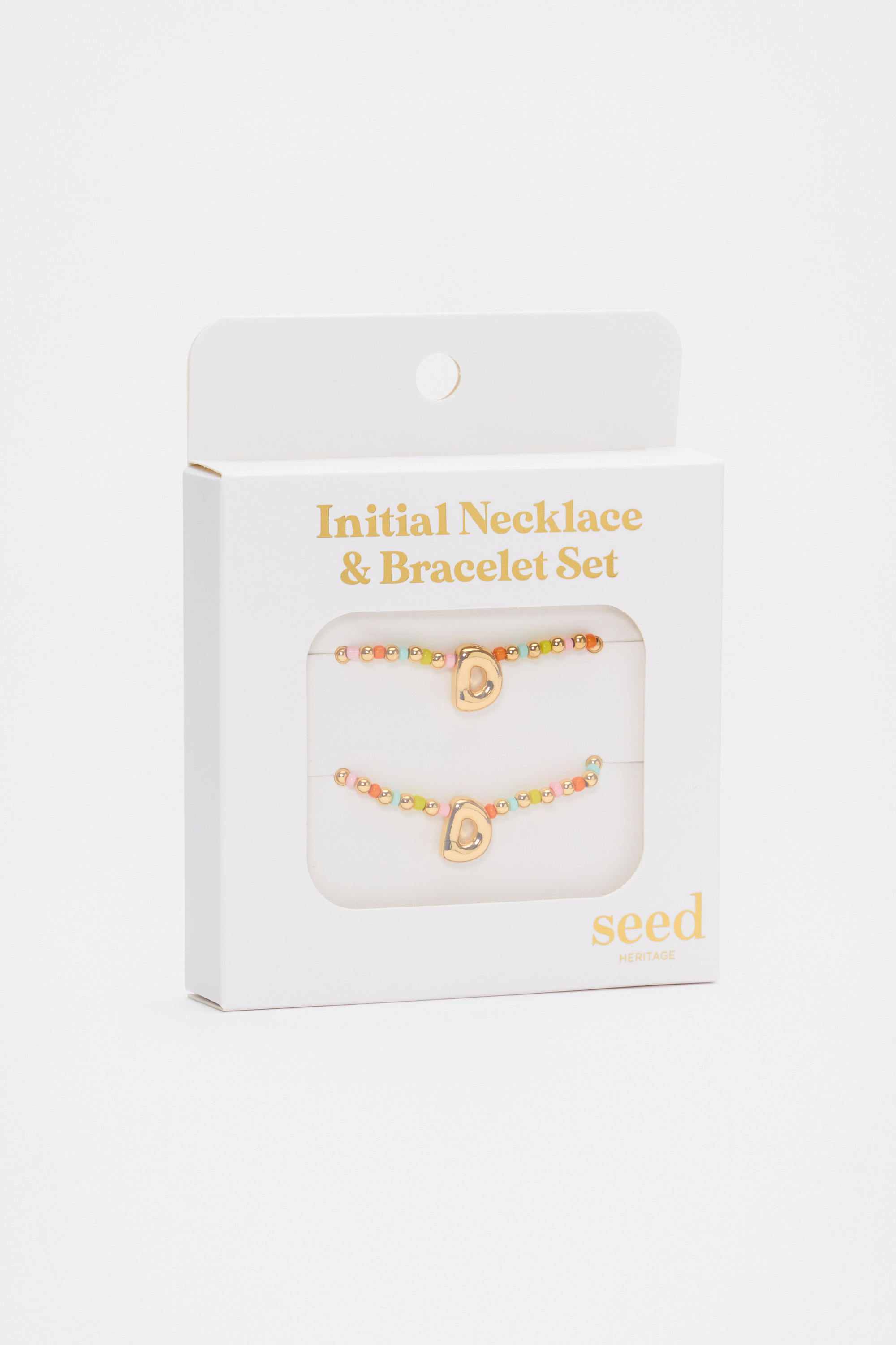 Initial Necklace And Bracelet Set  D  hi-res Initial Necklace And Bracelet Set  D  hi-res