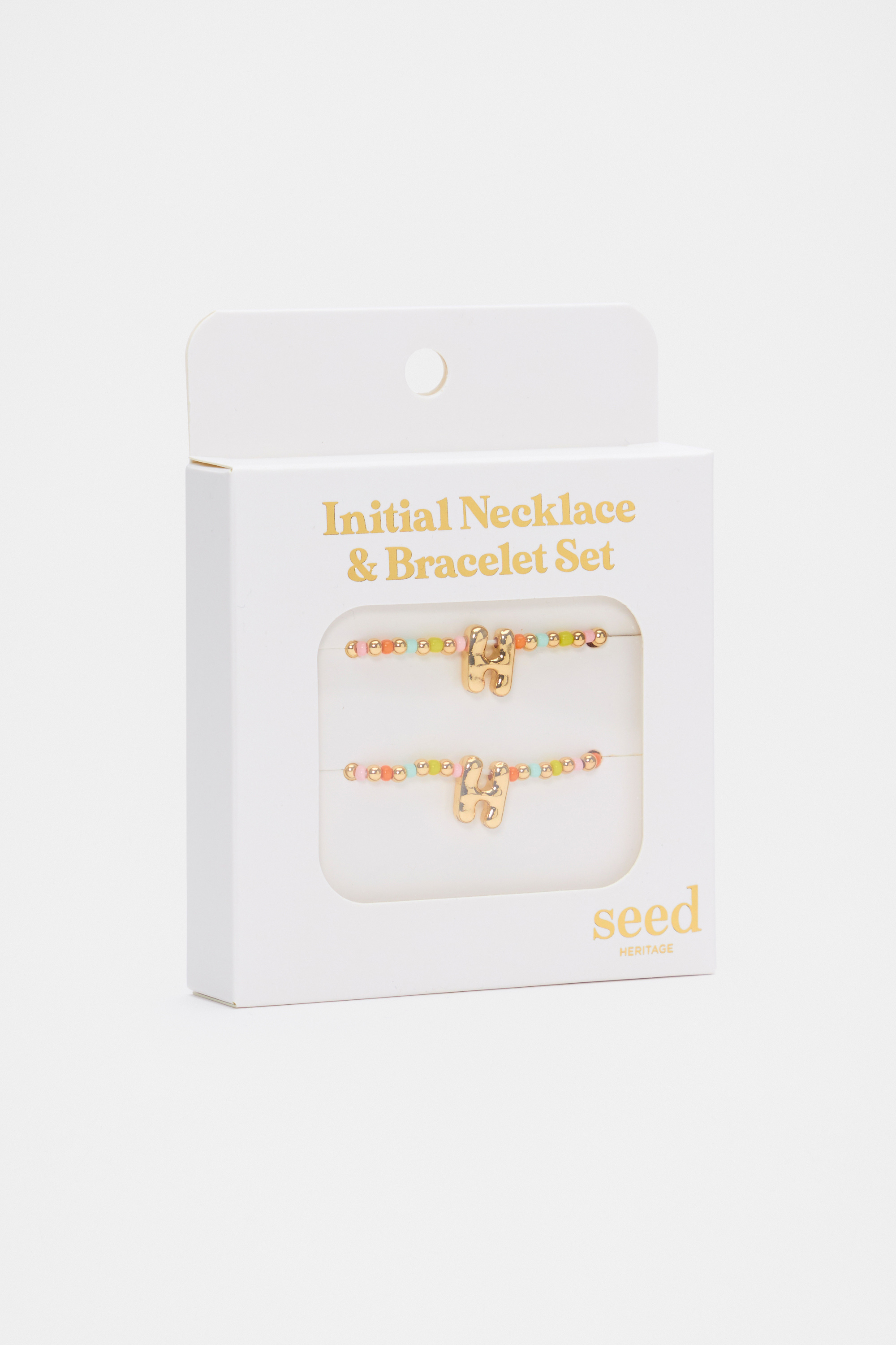 Initial Necklace And Bracelet Set  H  hi-res Initial Necklace And Bracelet Set  H  hi-res