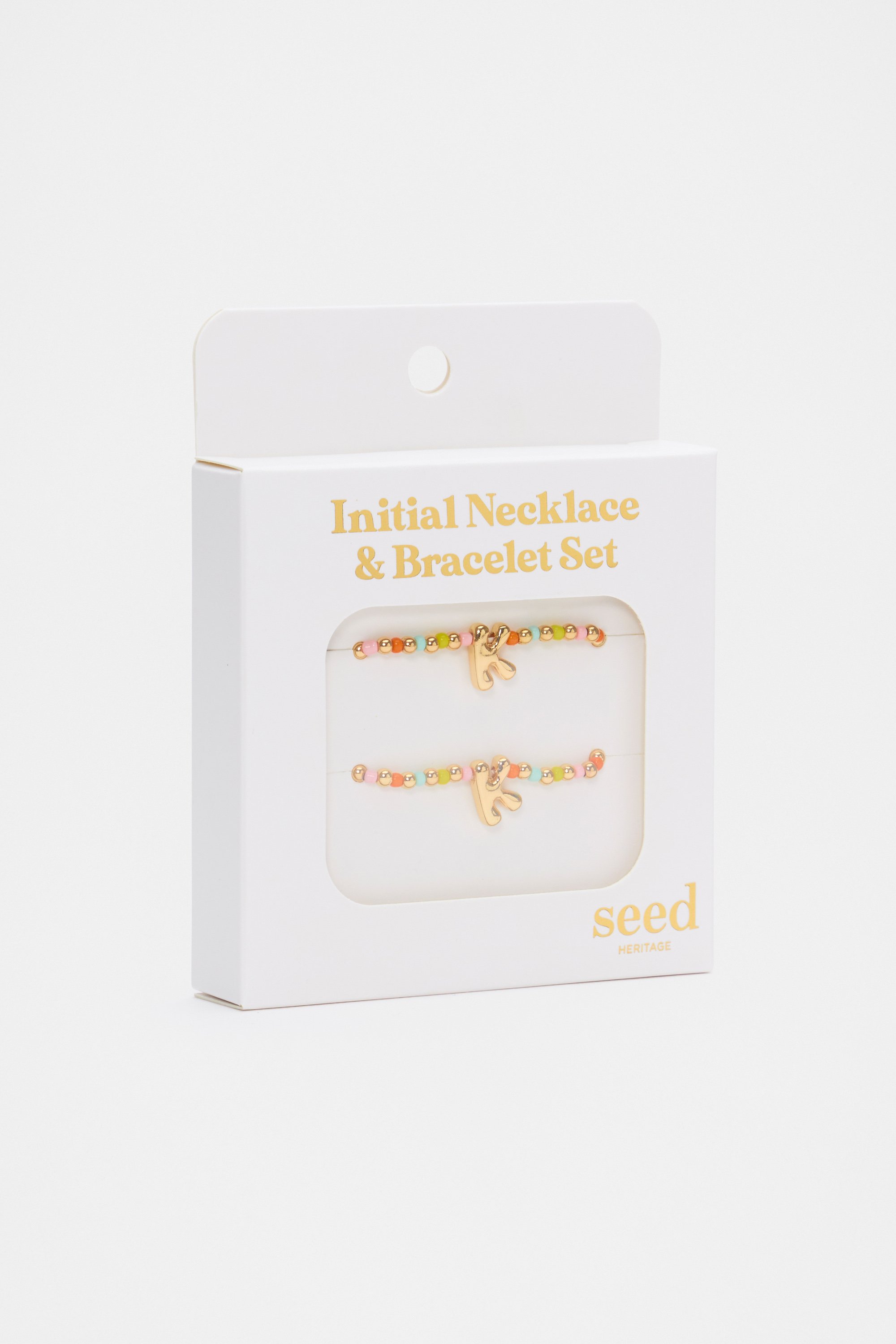 Initial Necklace And Bracelet Set  K  hi-res Initial Necklace And Bracelet Set  K  hi-res