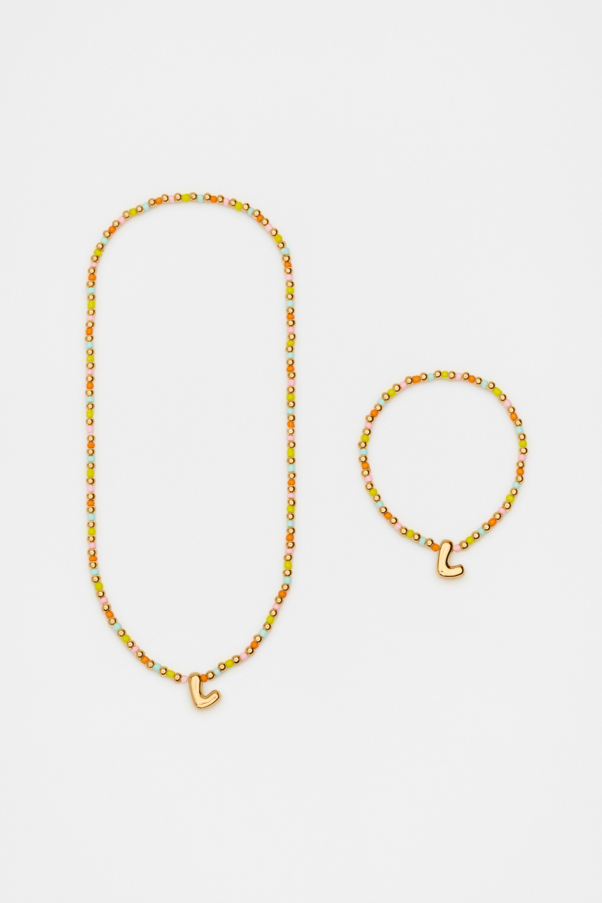 Initial Necklace And Bracelet Set  L  hi-res Initial Necklace And Bracelet Set  L  hi-res