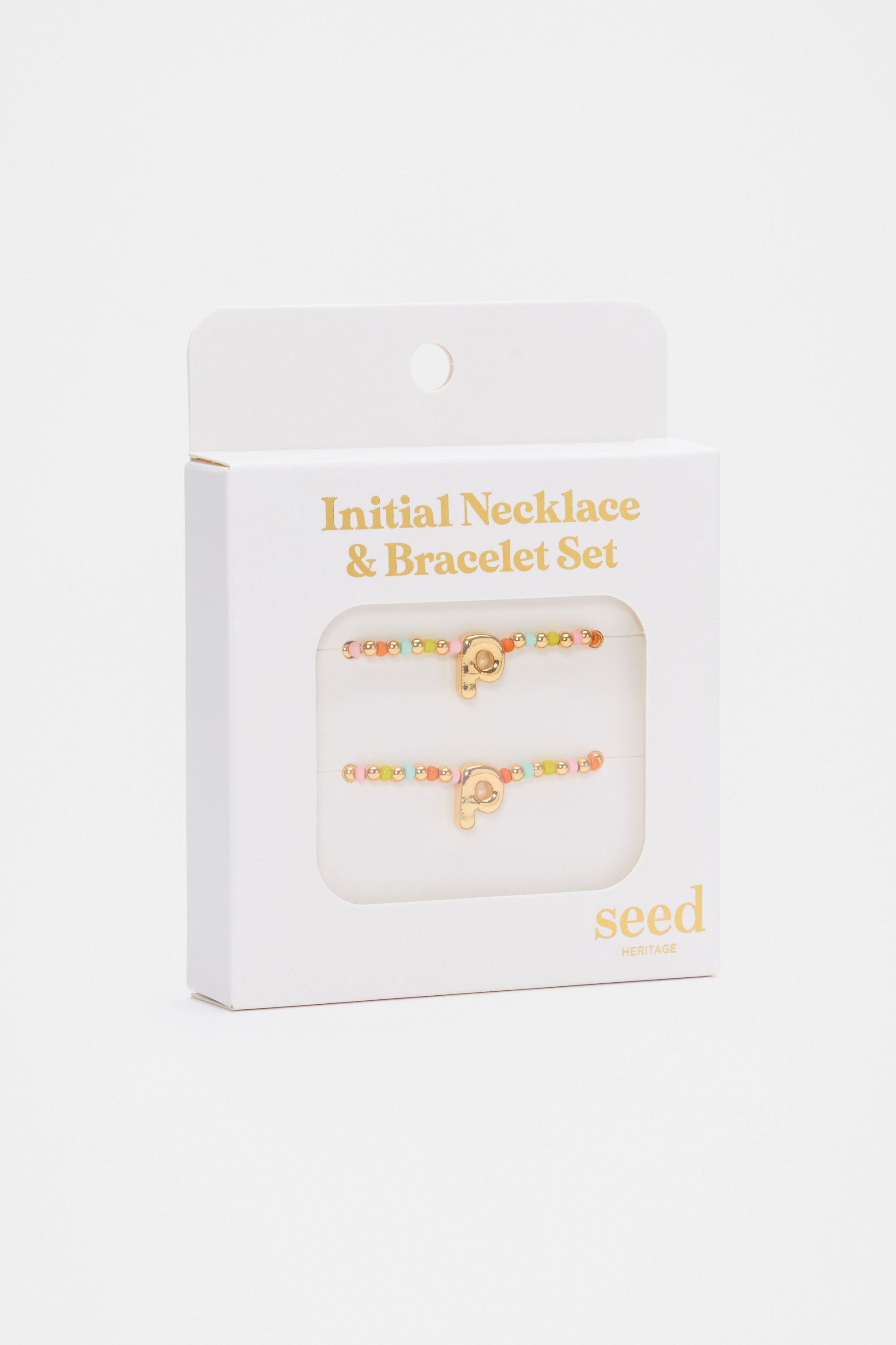 Initial Necklace And Bracelet Set  P  hi-res Initial Necklace And Bracelet Set  P  hi-res
