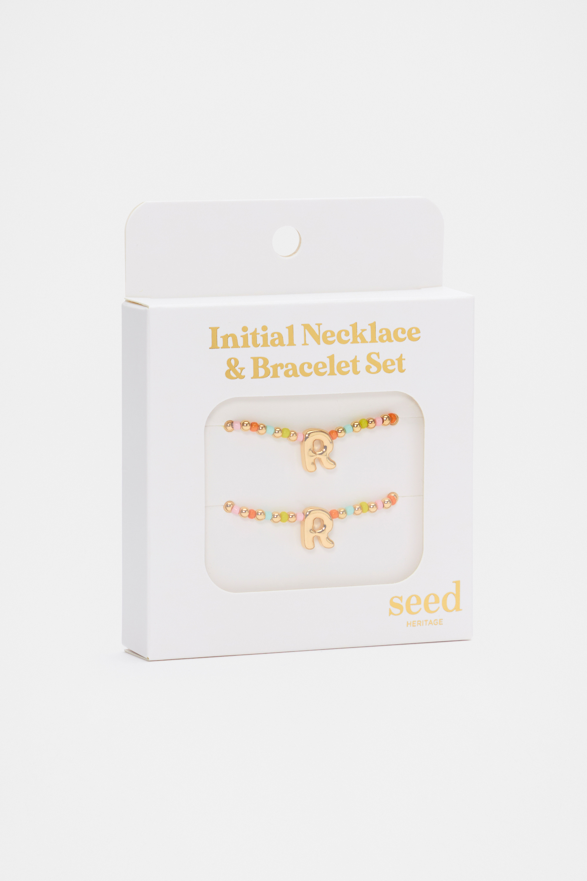 Initial Necklace And Bracelet Set  R  hi-res Initial Necklace And Bracelet Set  R  hi-res