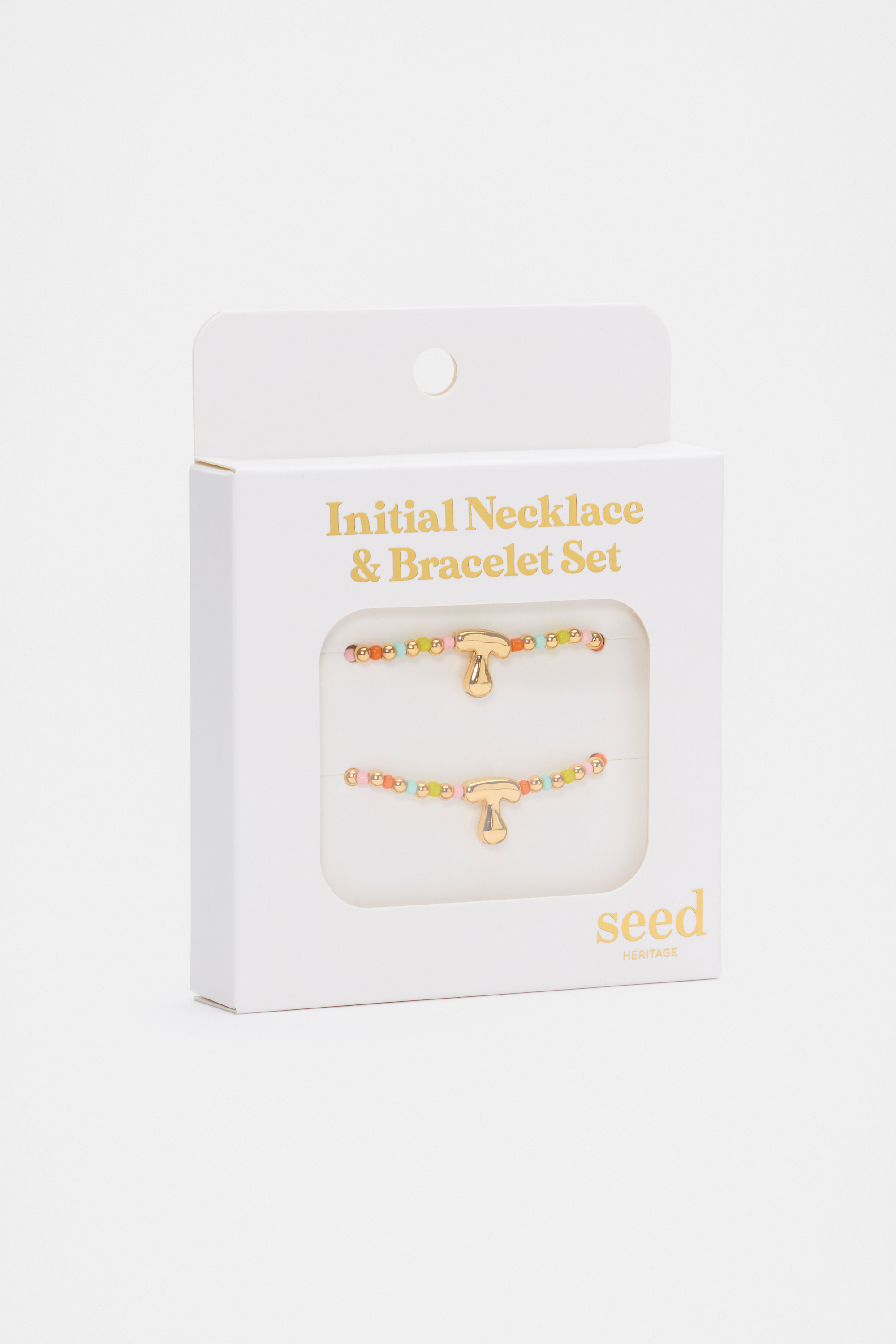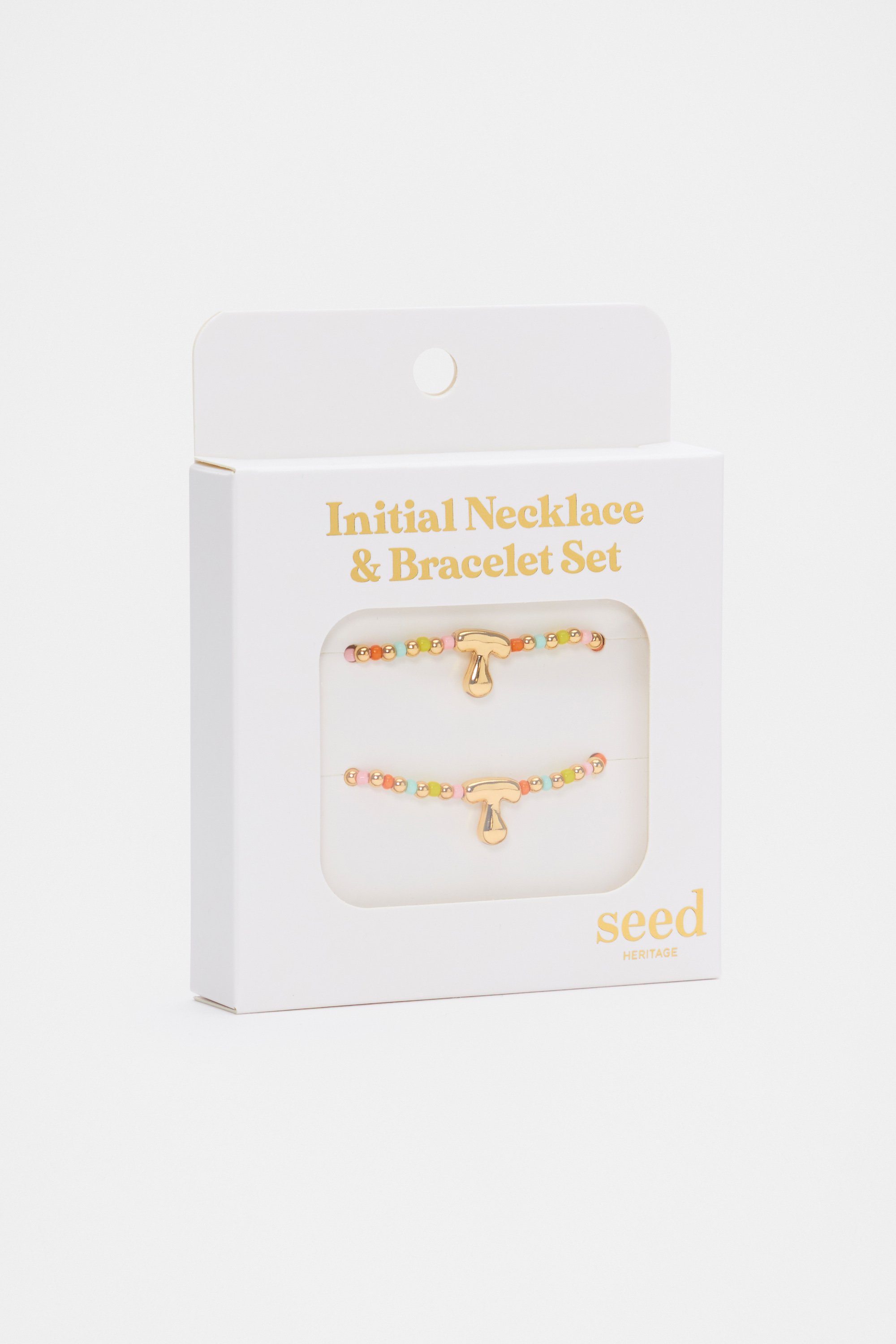 Personalised and sweet, this jewellery set is one she'll adore. It features a matching necklace and bracelet with a beaded design and initial detail. On a stretchy elastic, it's easy to take on and off. This product is not a toy and is not suitable for children three years and under.