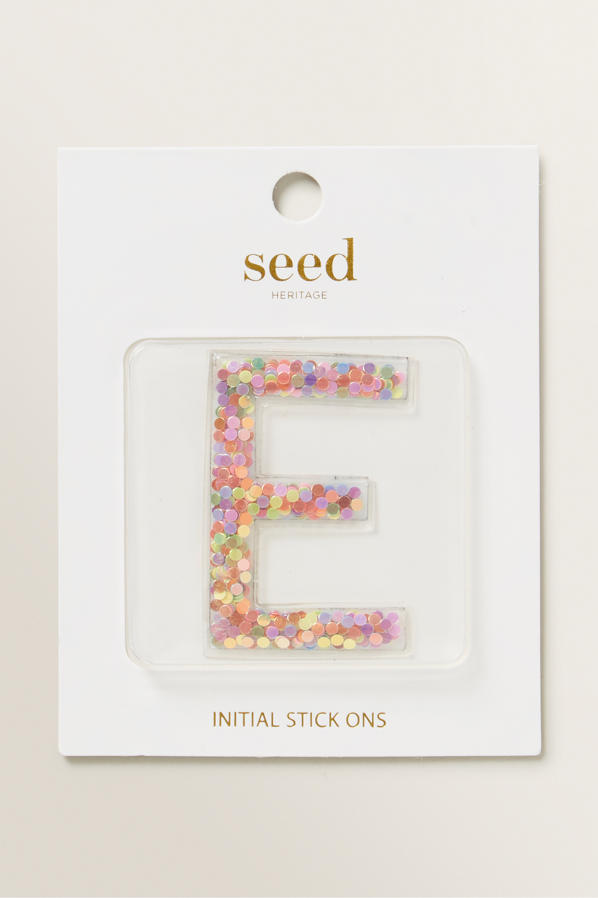 Personalise Seed accessories, with these Initial Stick On's. Peel back the protective layer, and stick these glittery letters to smart devices, backpacks, notebooks and doors. This is not a toy. Potential choking hazard. Not recommended for children 3 years and under.