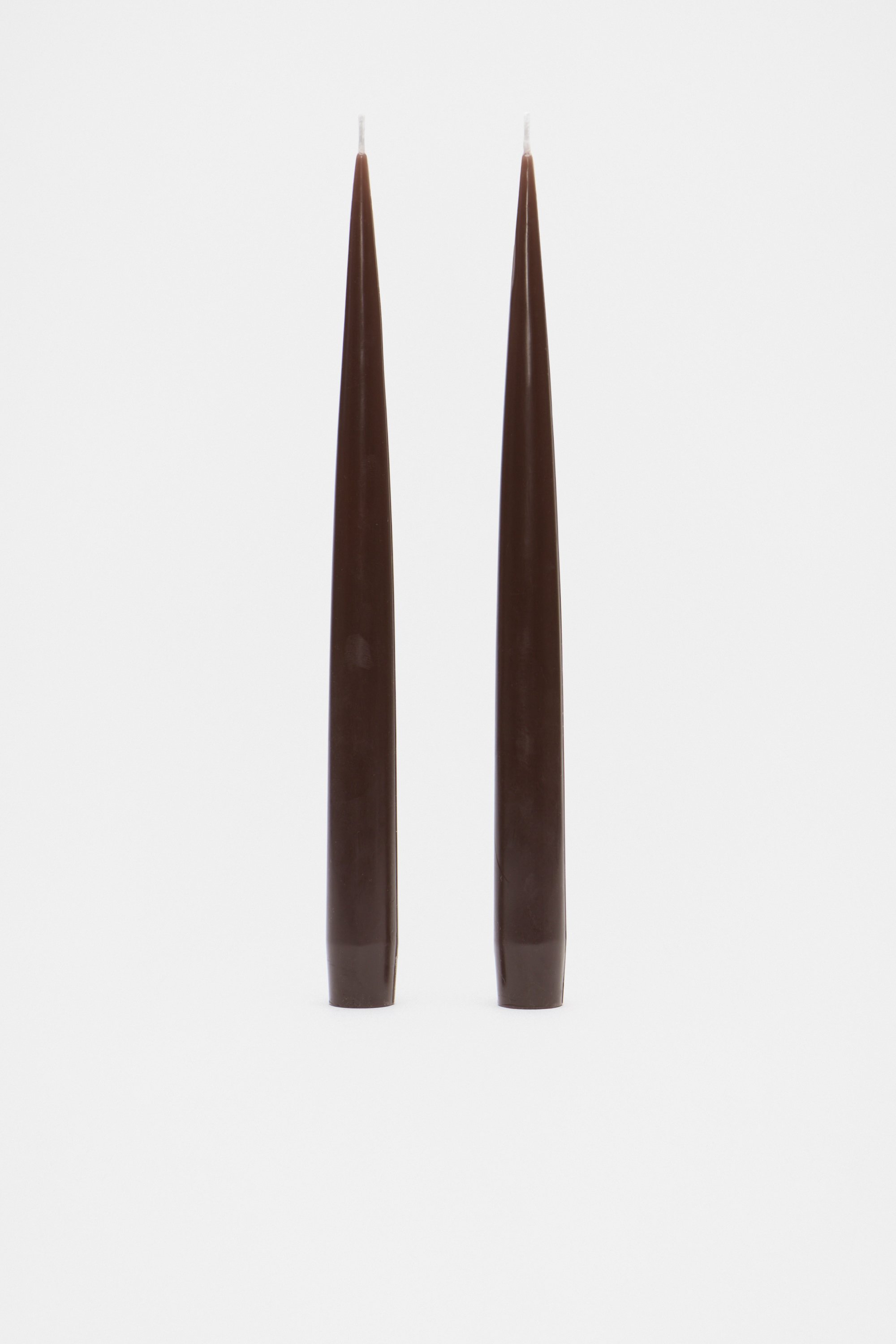 Add an elegant finishing touch to your table setting with this duo of candles, sleek and refined. Crafted in paraffin, they're available in either alabaster or dark espresso.