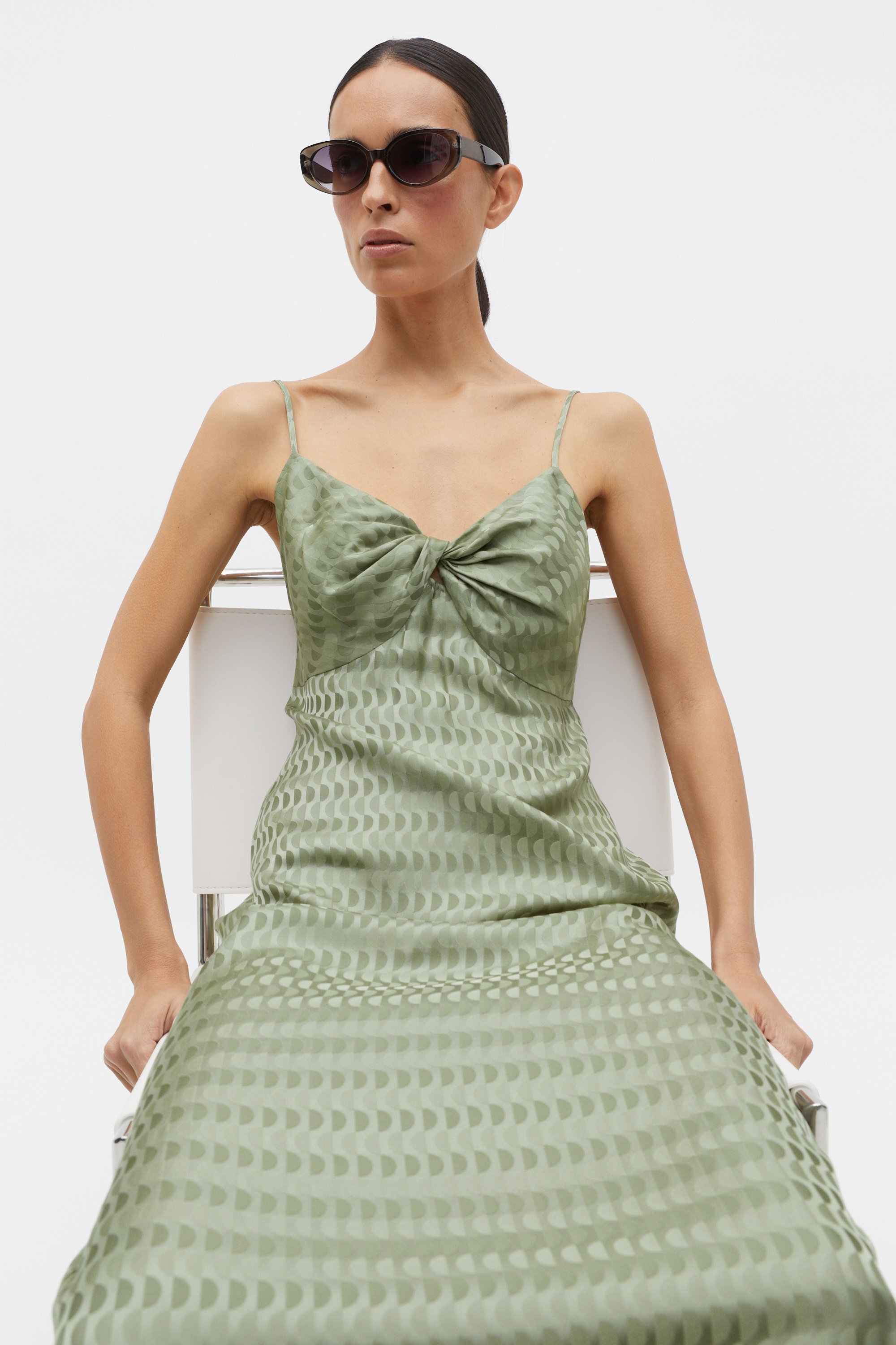 Jacquard Twist Front Midi Dress  Pale Olive  hi-res Jacquard Twist Front Midi Dress  Pale Olive  hi-res Jacquard Twist Front Midi Dress  Pale Olive  hi-res Jacquard Twist Front Midi Dress  Pale Olive  hi-res