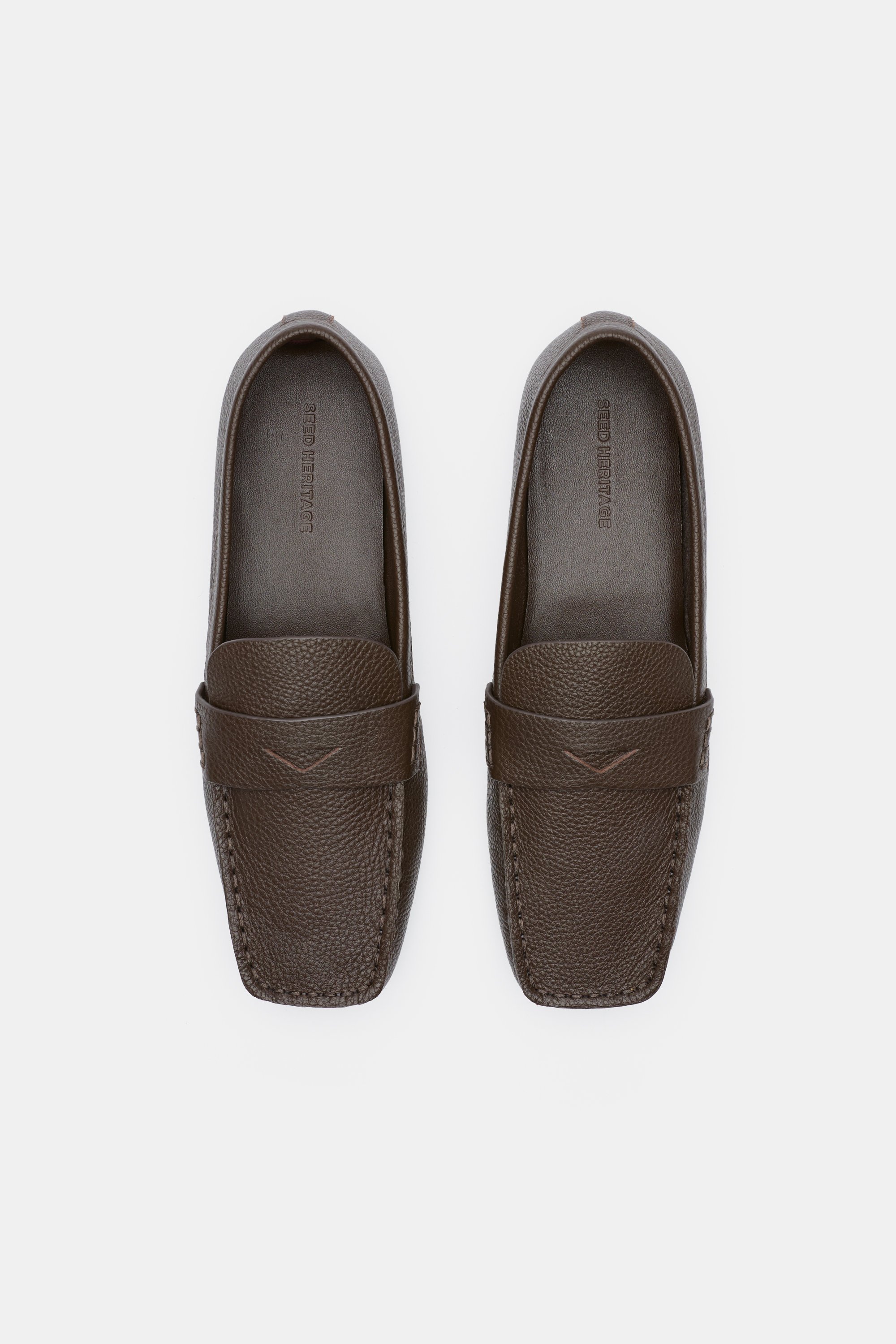 A workwear style with a relaxed feel, these loafers are an essential pair for your wardrobe refresh. Crafted in premium leather with a pebble grain, they feature a squared toe and have a flat profile, comfortable for all day wear.
