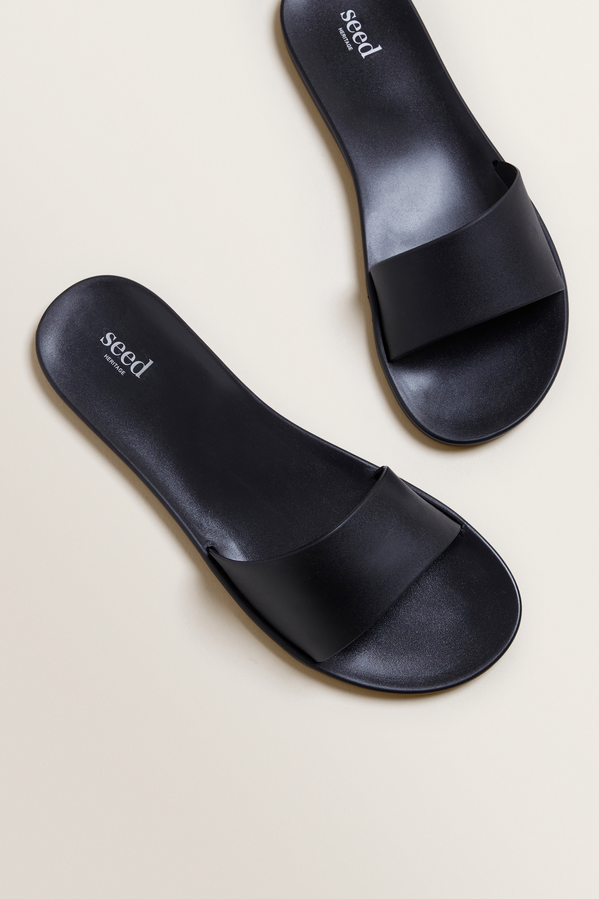 Made from a comfortable PVC, these slides are water resistant and are an easy to wear slip-on style.