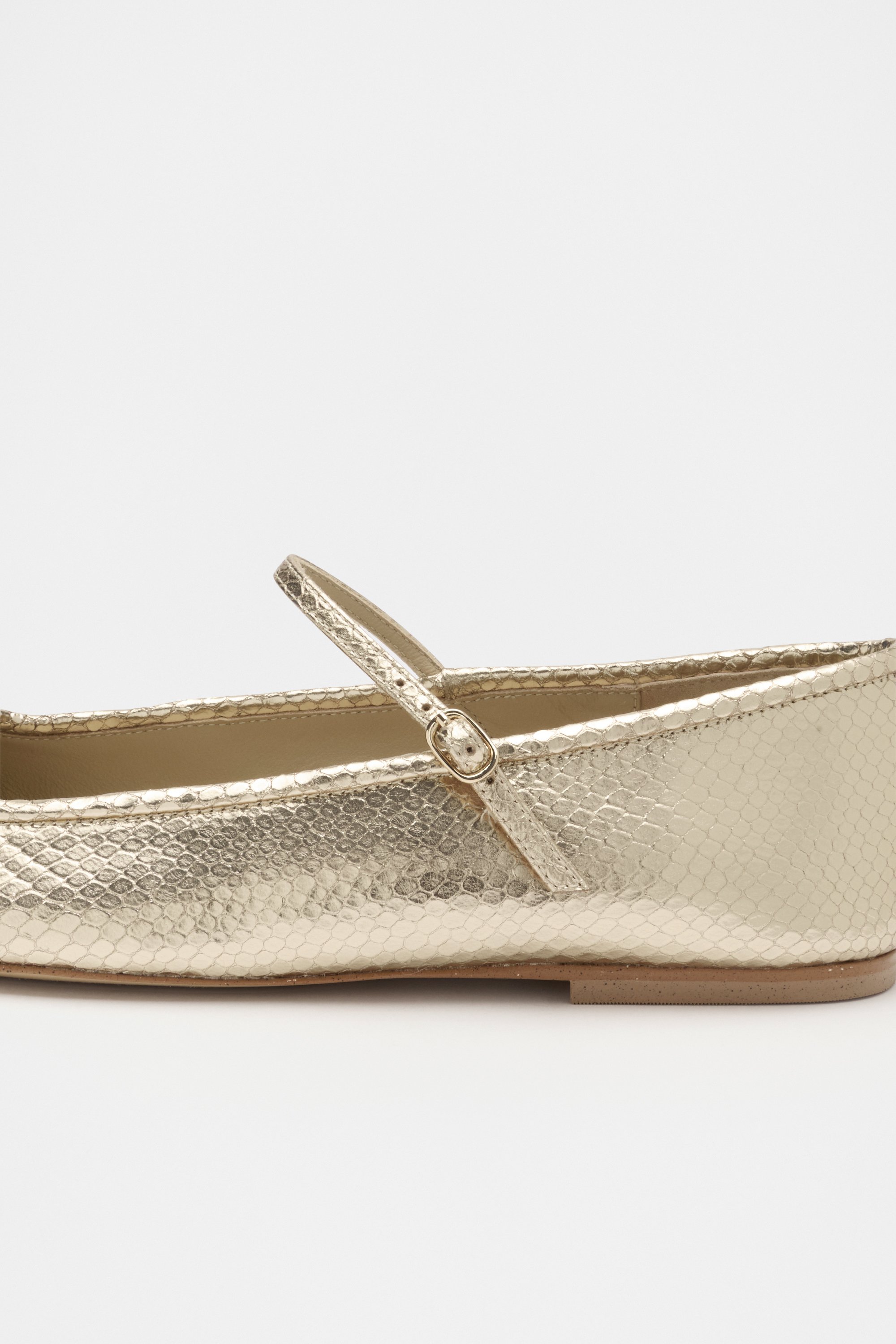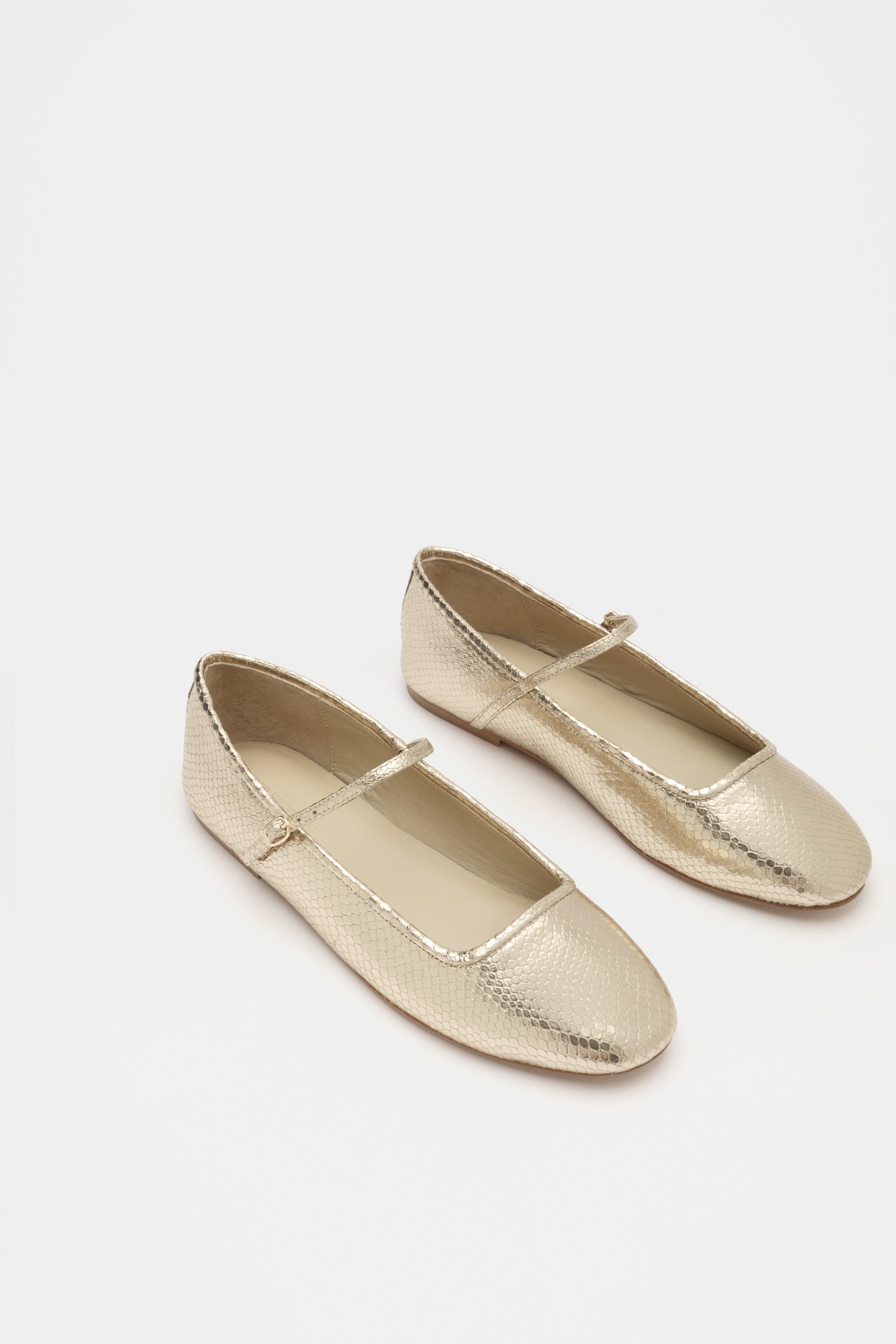 Make a statement with these on-trend ballet flats. They feature an adjustable Mary Jane strap, a soft rounded toe shape, and an embossed snake pattern. Crafted from premium leather. As a proud member of Leather Working Group, Seed supports their mission of greater transparency and continuous improvement, helping to create more responsible leather production. For more information, please visit Leather Working Group.