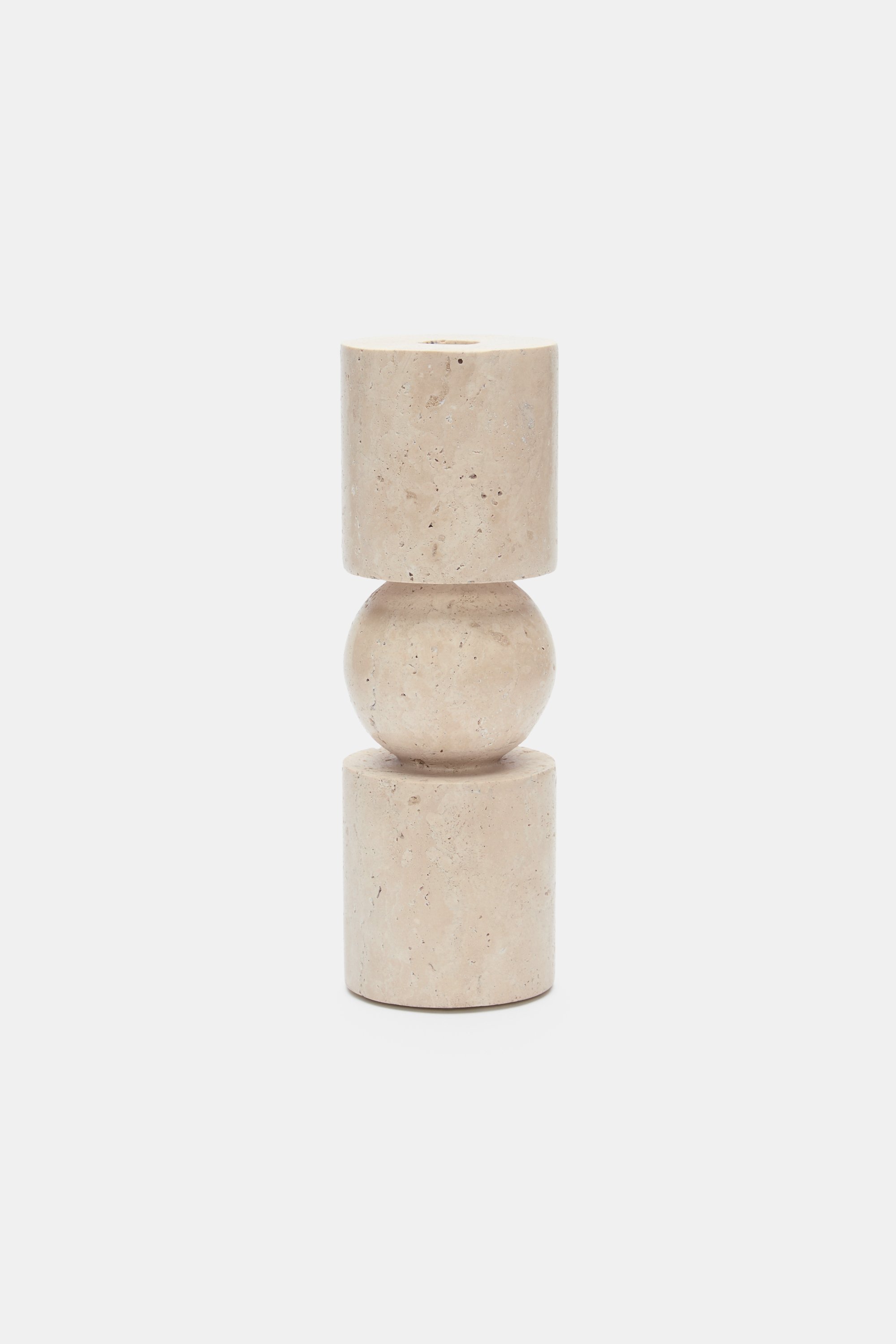 Crafted in travertine, this candle holder is a modern design with timeless appeal. Pair with a set of our tall taper candles to complete the look, or for the perfect gift. Please note that variations may occur in the travertine as it is a natural stone.