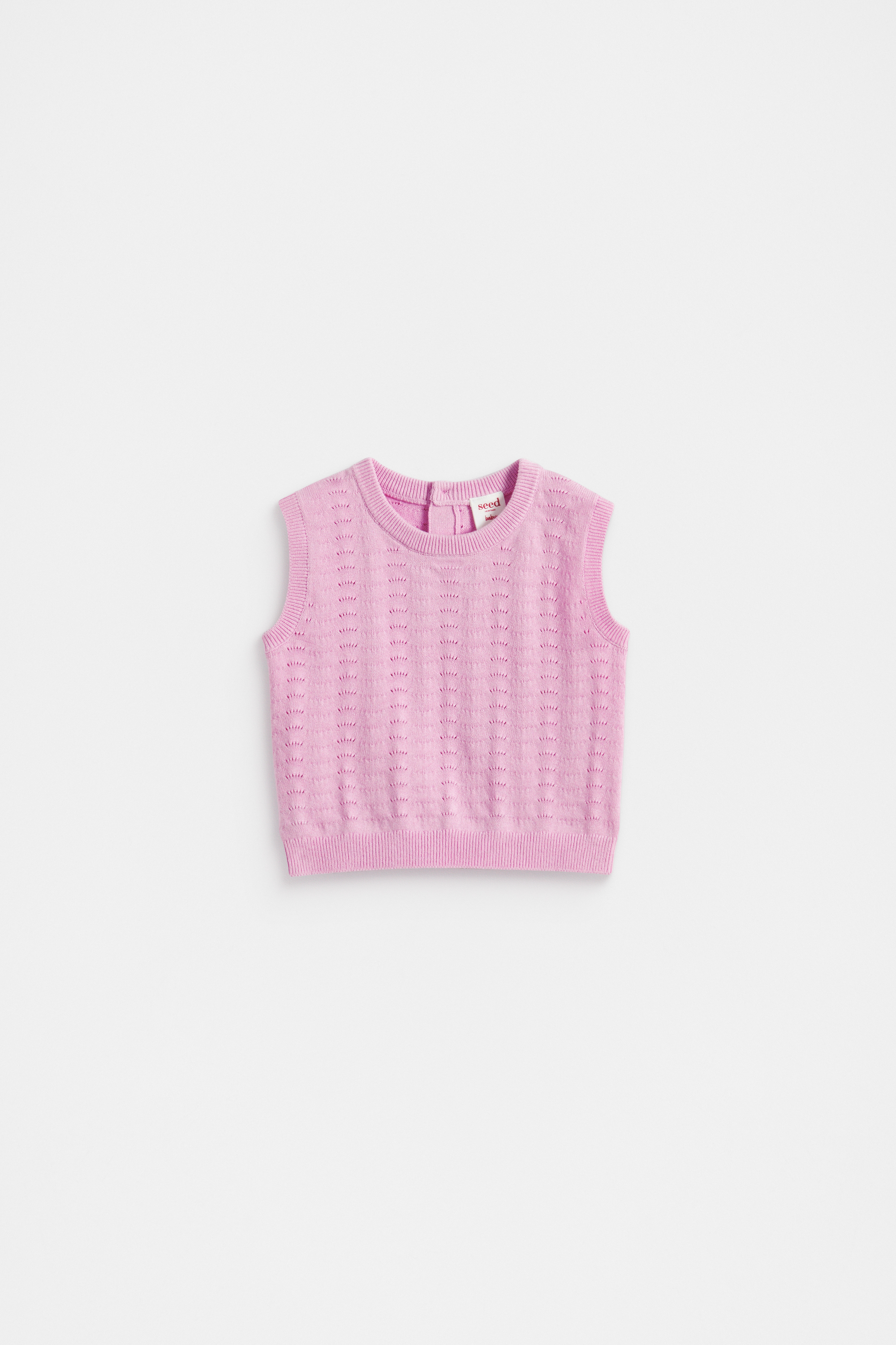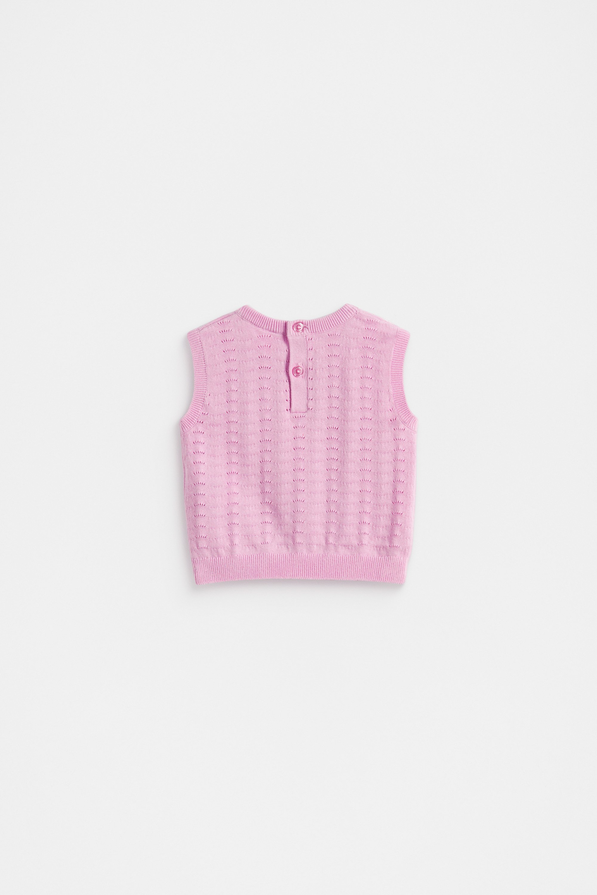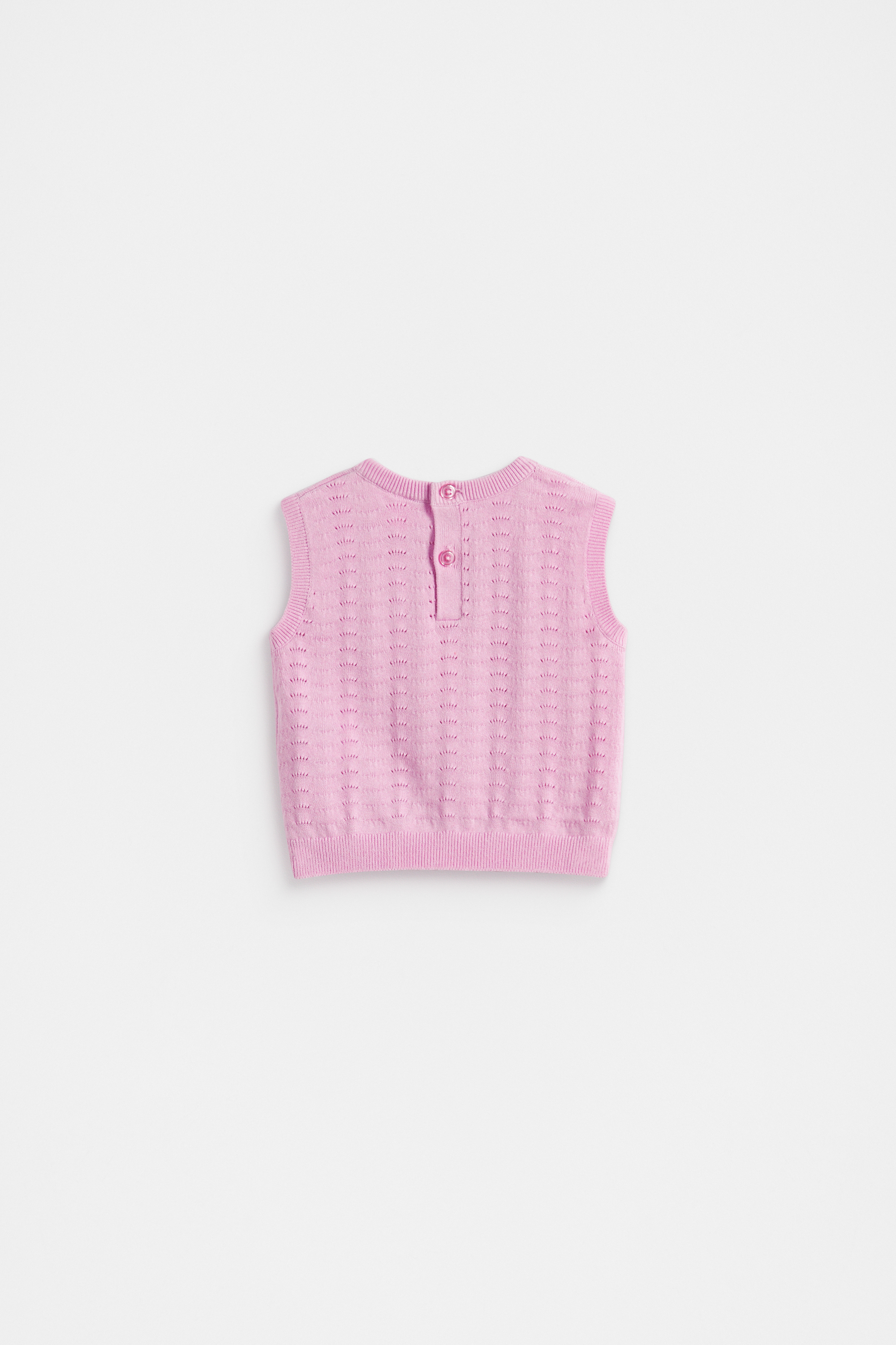 An ideal little layer, this tank top is crafted from a textured cotton knit. It features a round neck with a rear button placket, sleeveless construction, and ribbed trims.