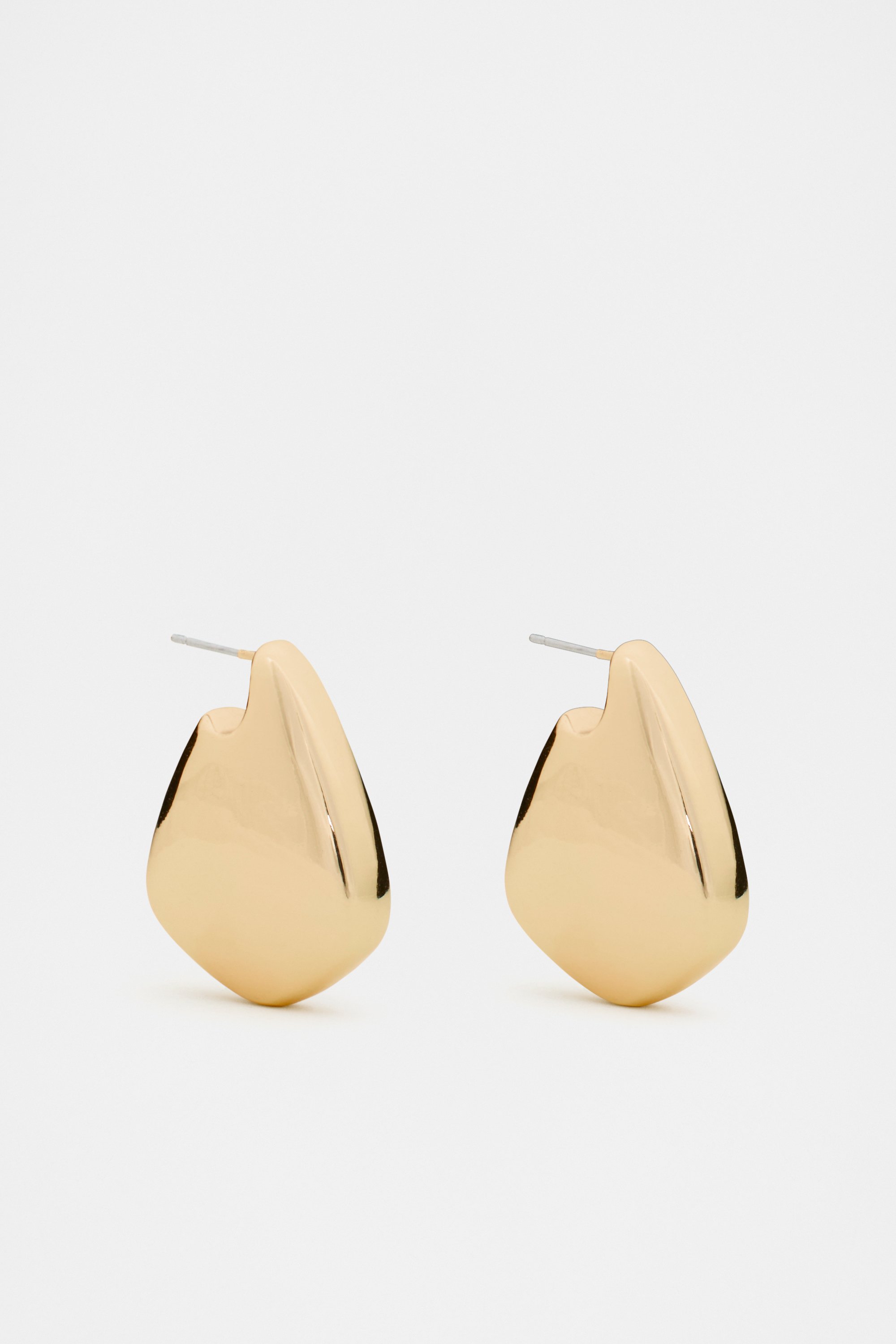 The ideal statement earrings, these feature an angular, asymmetric design in a hoop shape, with a high-shine metal finish. Style these with the matching ring and cuff for a curated look.
