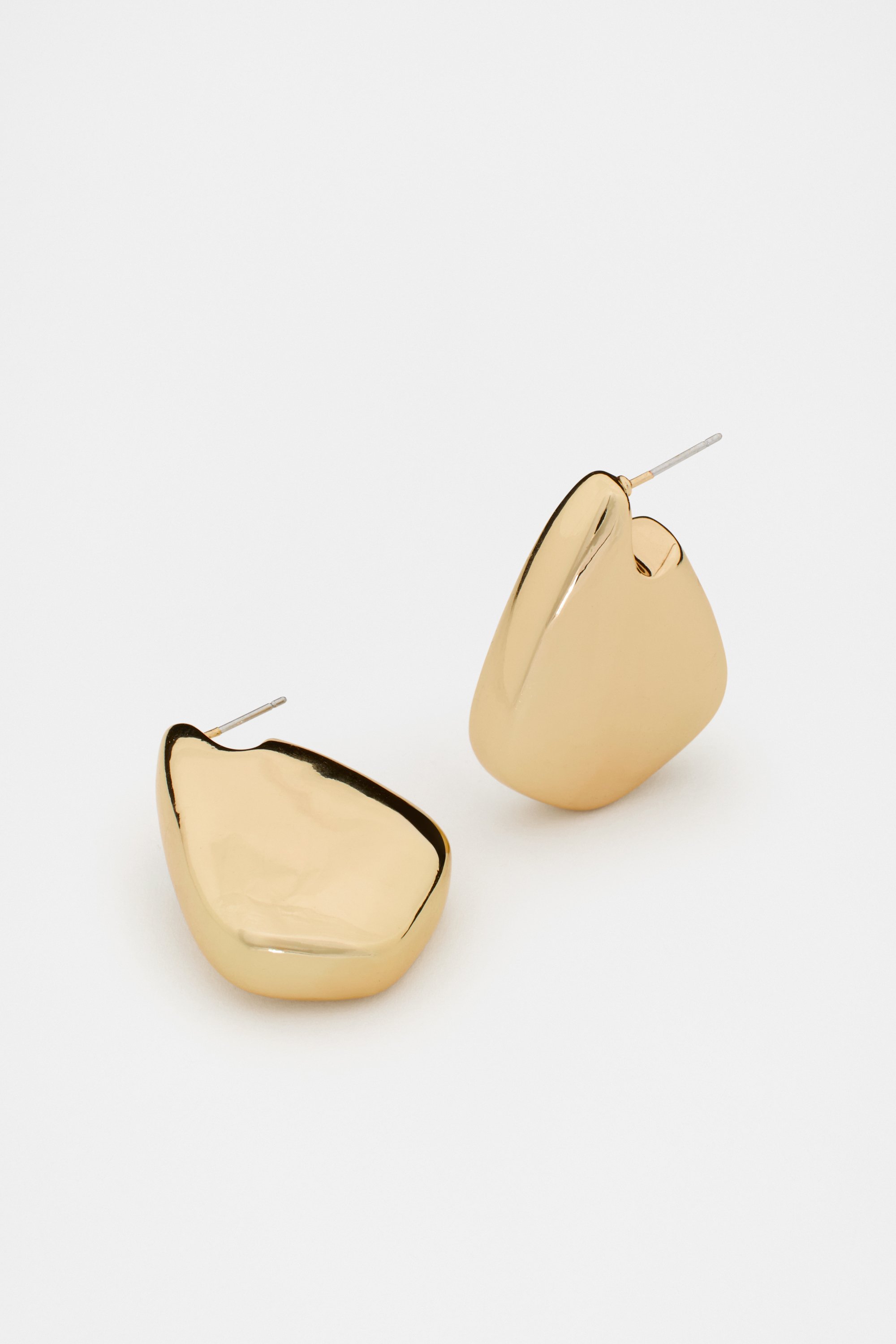 The ideal statement earrings, these feature an angular, asymmetric design in a hoop shape, with a high-shine metal finish. Style these with the matching ring and cuff for a curated look.