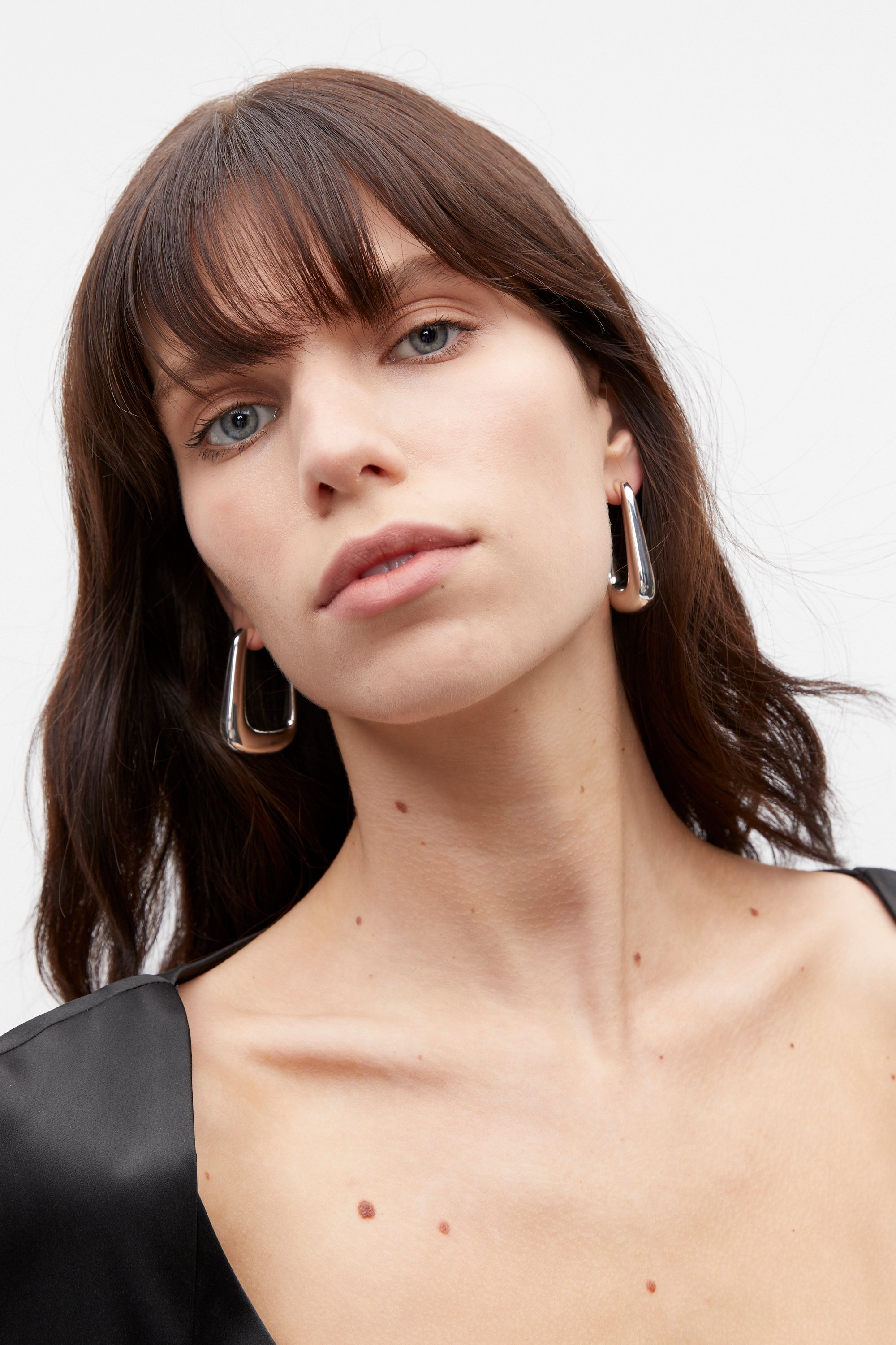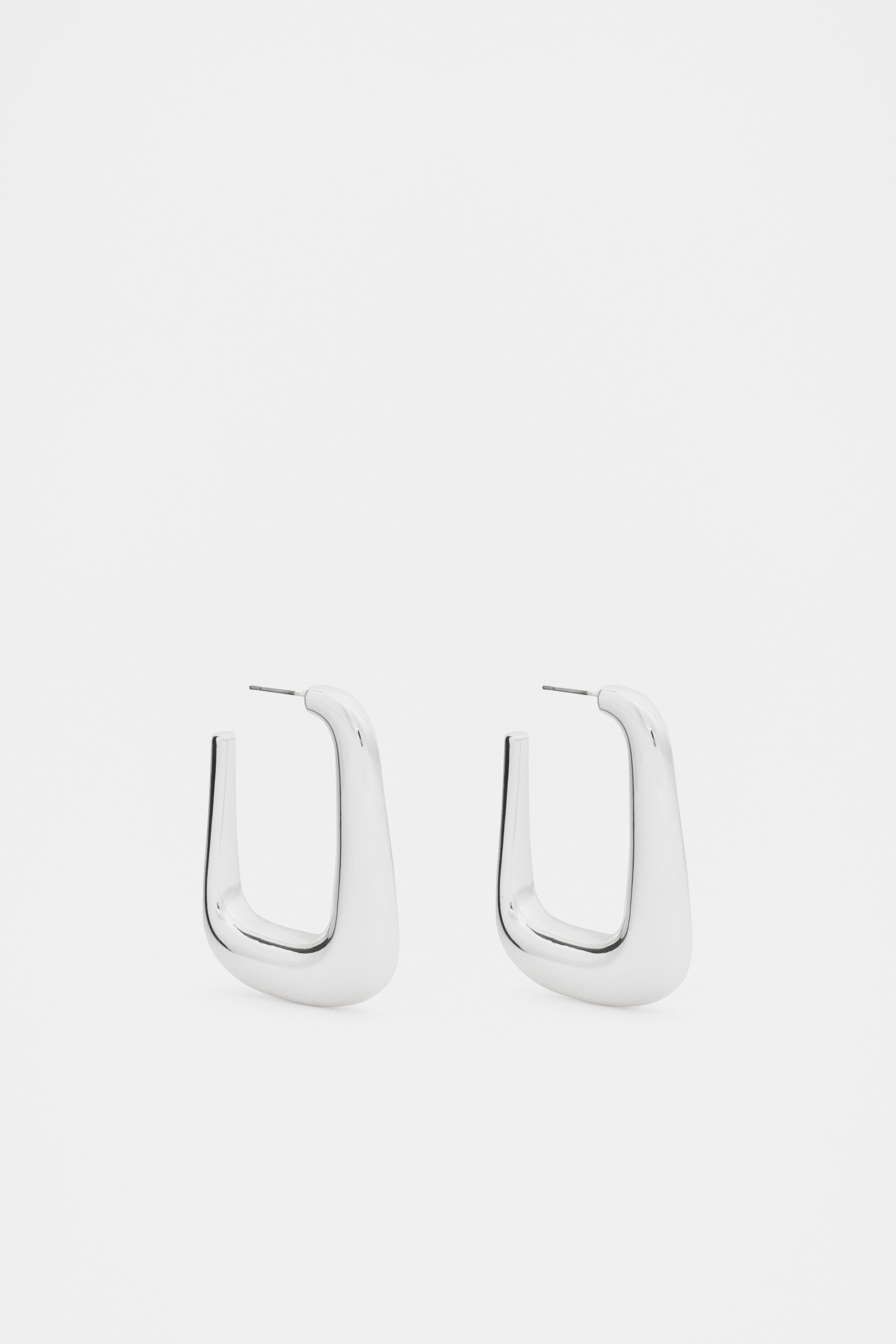With a polished feel and a high-shine finish, these earrings are the ideal statement hoops. They feature an oversized rectangular shape with curved edges.