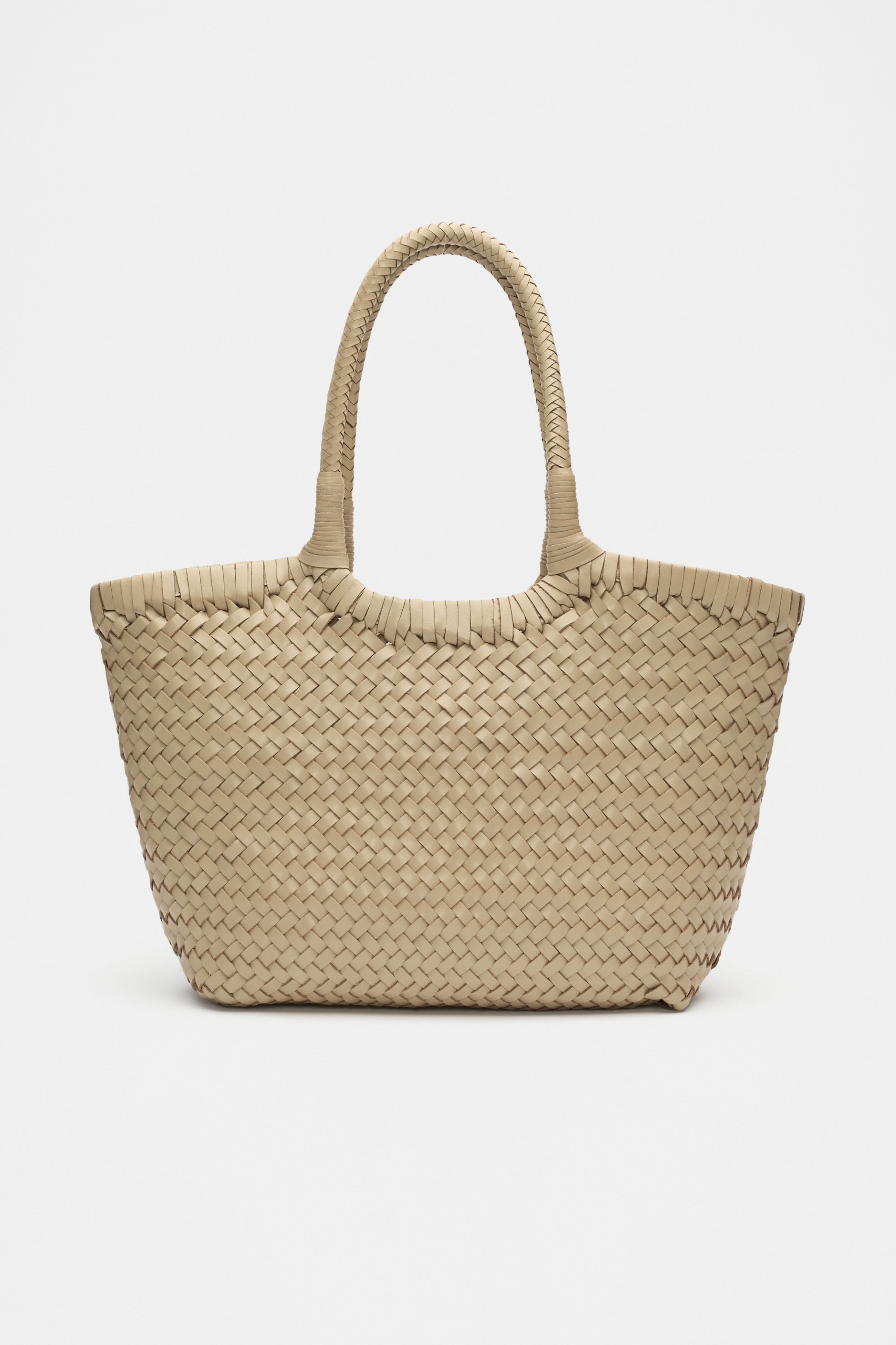 Add a statement to your new season styling with this leather basket bag. Crafted in premium leather, it features a woven texture with an open design and curved handles. Generously sized, it's a practical option that adds a fashion-forward touch to your every day. As a proud member of Leather Working Group, Seed supports their mission of greater transparency and continuous improvement, helping to create more responsible leather production. For more information, please visit Leather Working Group.