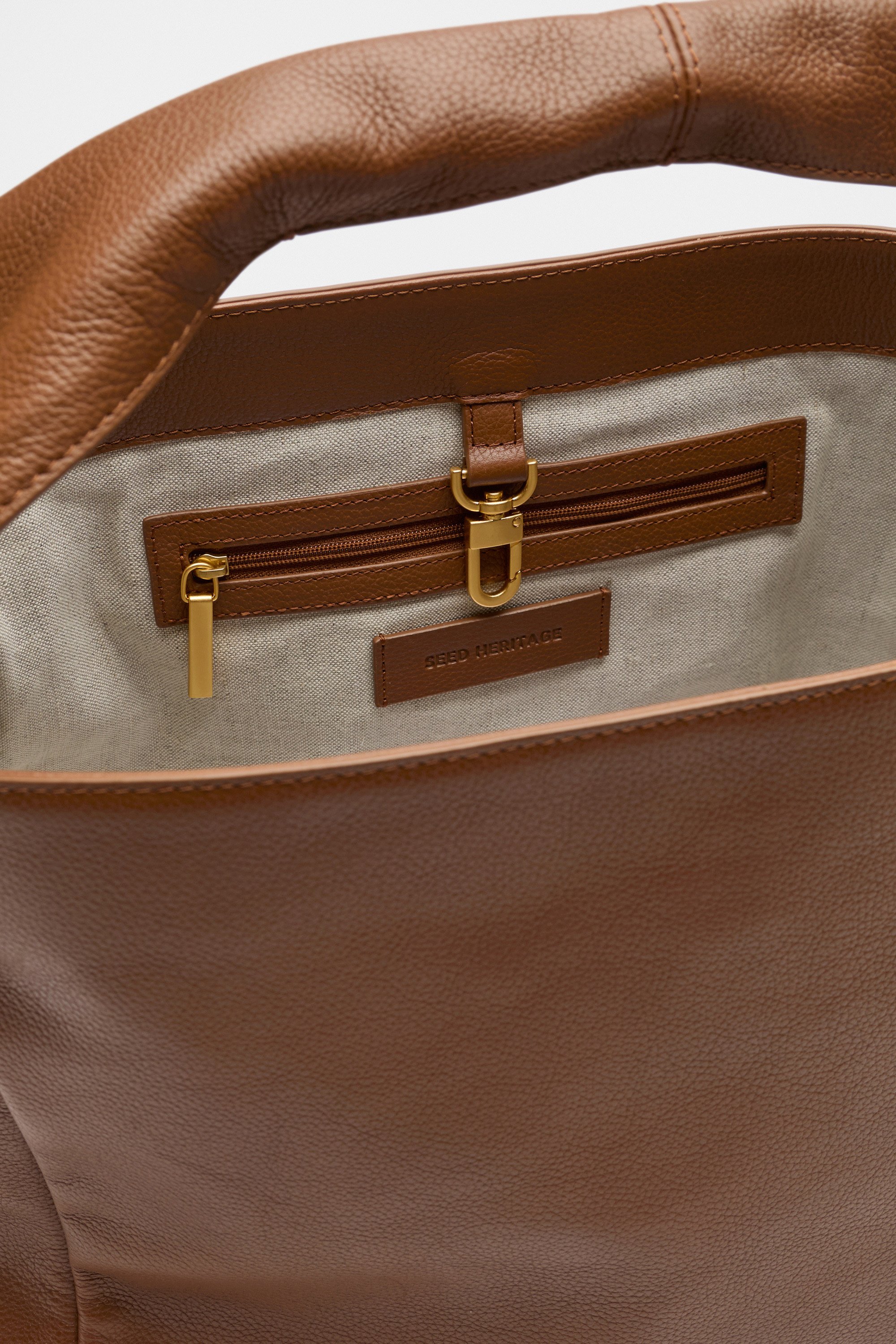 Designed to add ease and elegance, update your new season styling with this classic curved tote. Generously sized, it's crafted in premium leather and features a wide shoulder strap and an open design. As a proud member of Leather Working Group, Seed supports their mission of greater transparency and continuous improvement, helping to create more responsible leather production. For more information, please visit Leather Working Group.