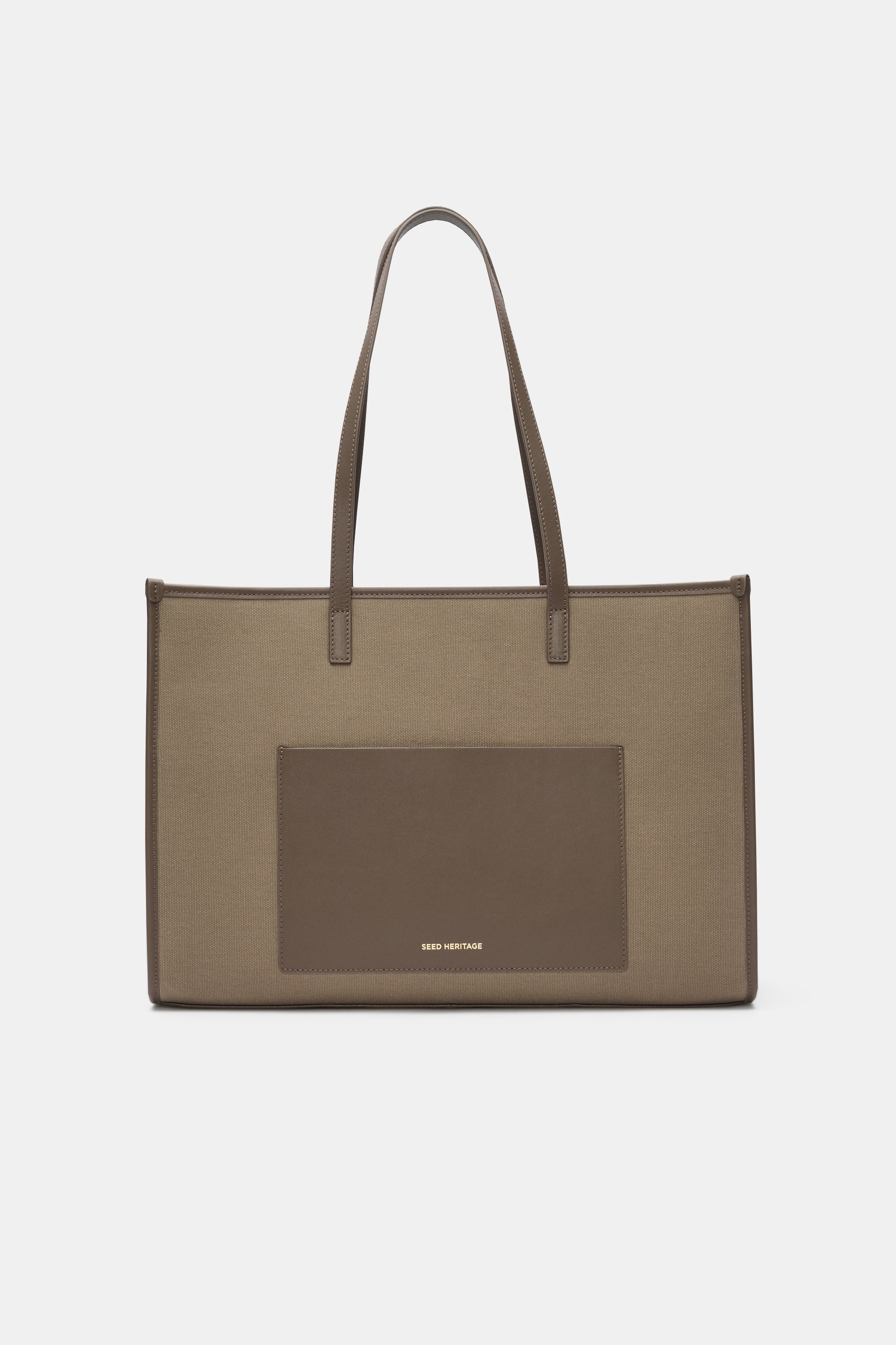Elevate your everyday fit with this tote bag, a simple and timeless design. Crafted in cotton with leather trims, it's generously sized and features a front slip pocket and an internal zip pocket. Available in both sandstone and cocoa, choose the perfect colour to complement your style.