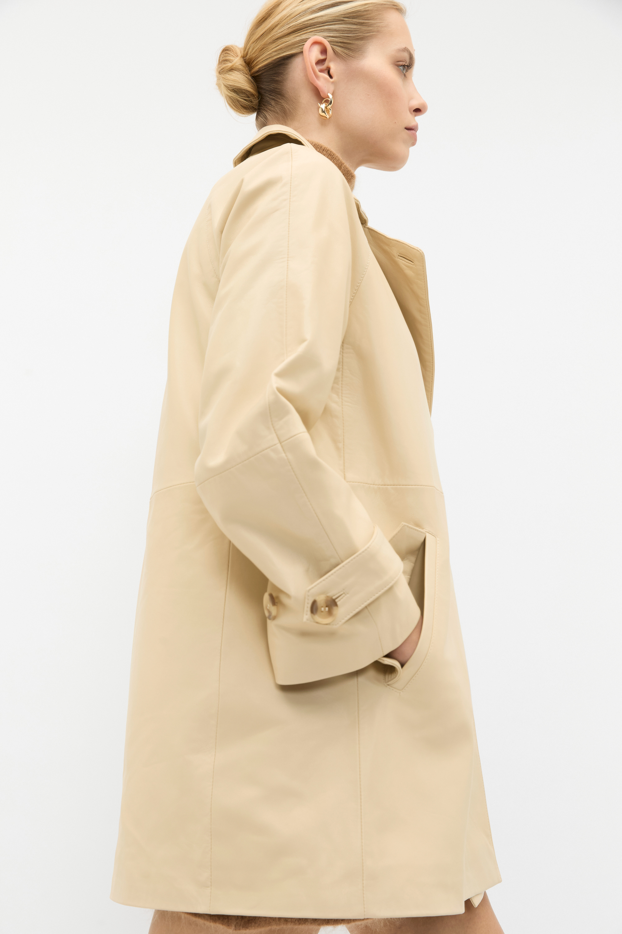 A timeless design with enduring style, this leather jacket is an investment piece to buy now and love forever. Featuring classic trench details, it has a notched collar, raglan sleeves with adjustable cuffs, angled pockets and a button front. Crafted in premium, buttery soft leather, it adds a statement to your winter wardrobe, chic and versatile and set to be your new favourite piece. As a proud member of Leather Working Group, Seed supports their mission of greater transparency and continuous improvement, helping to create more responsible leather production. For more information, please visit Leather Working Group.