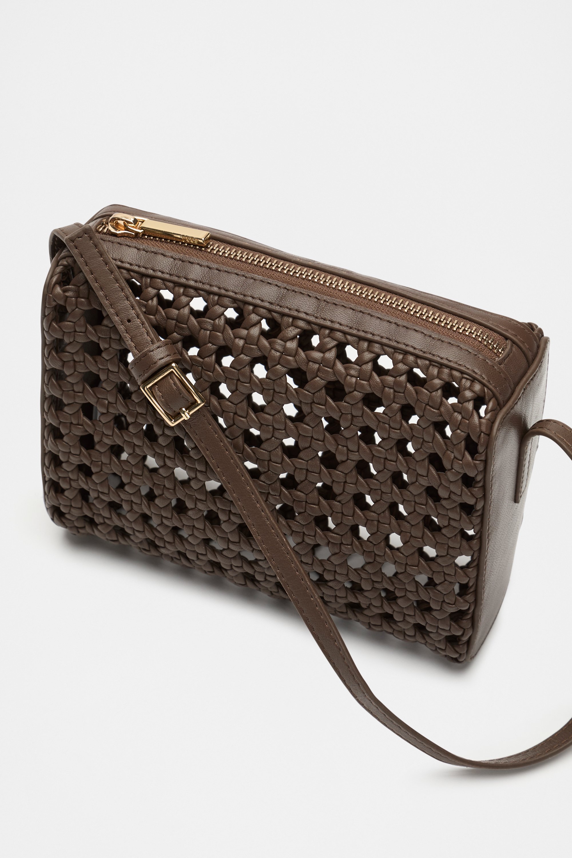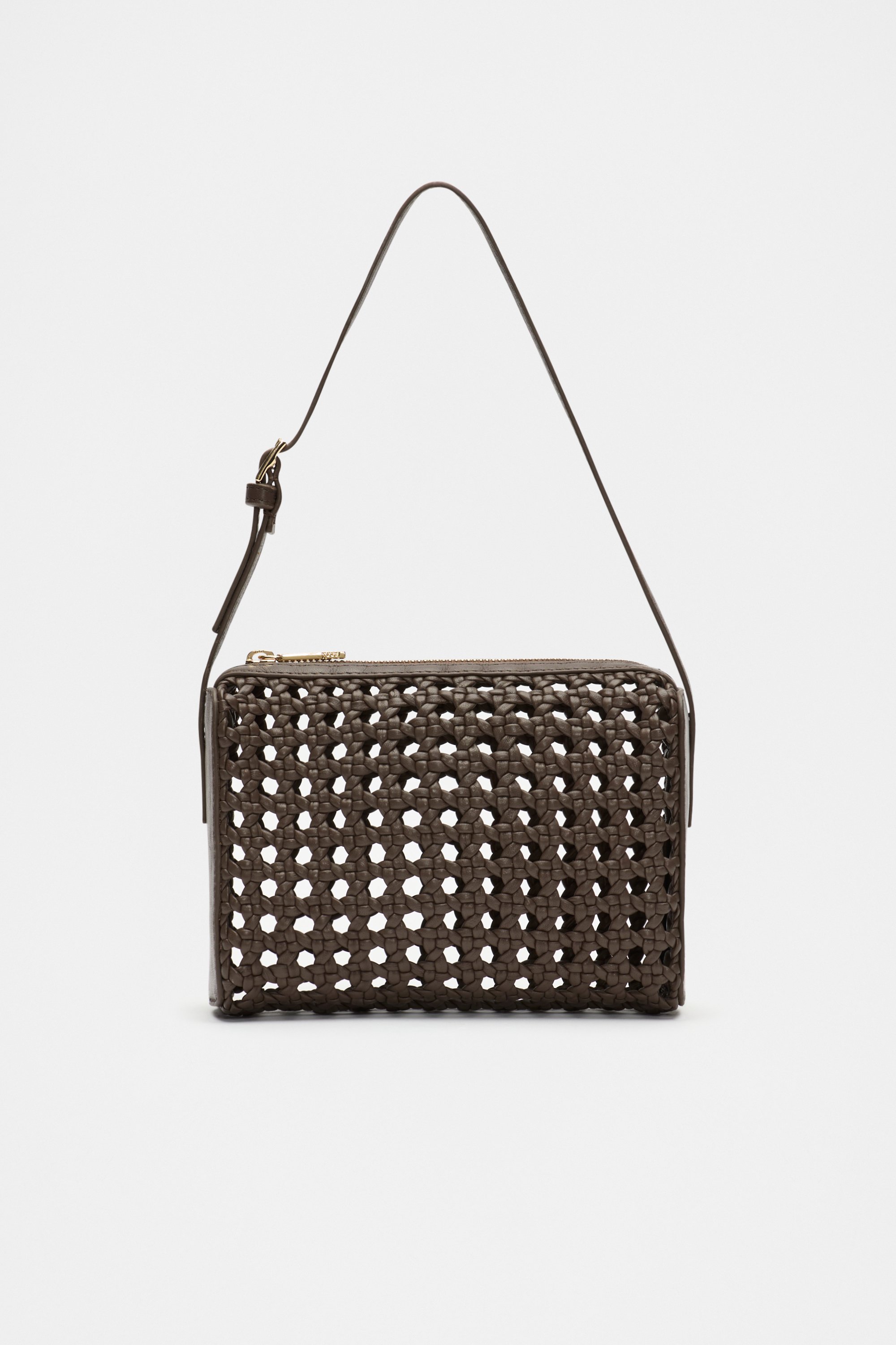 Add a touch of texture to your look with this premium leather bag. It features a woven design in a structured shape, with an adjustable shoulder strap, and a zip closure.