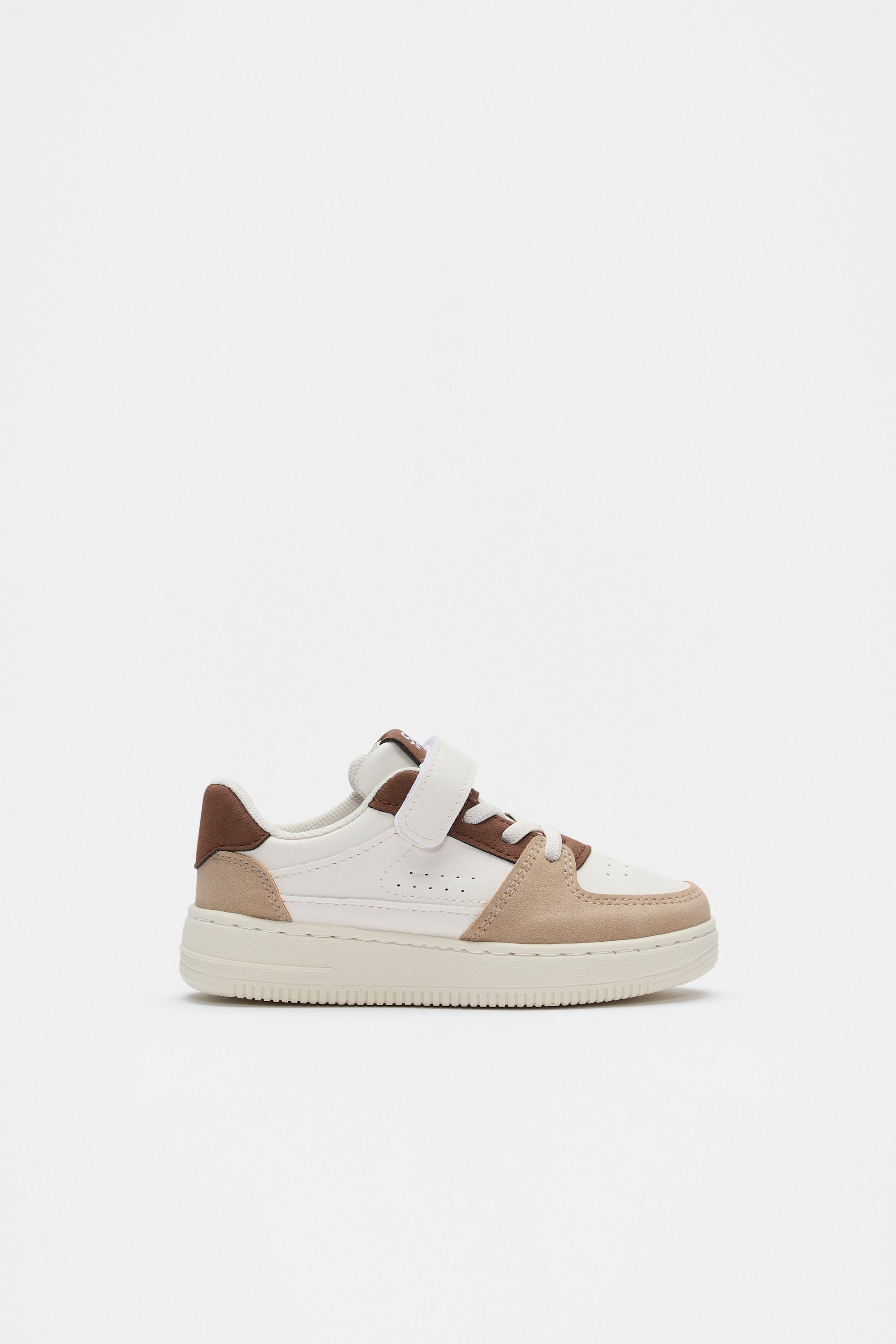 An ideal staple shoe for their wardrobe, these sneakers feature a colourblock design with faux-suede panels. Sizes 24 - 29 have hook-and-loop closures with elastic laces, and sizes 30 - 35 are lace-up.
