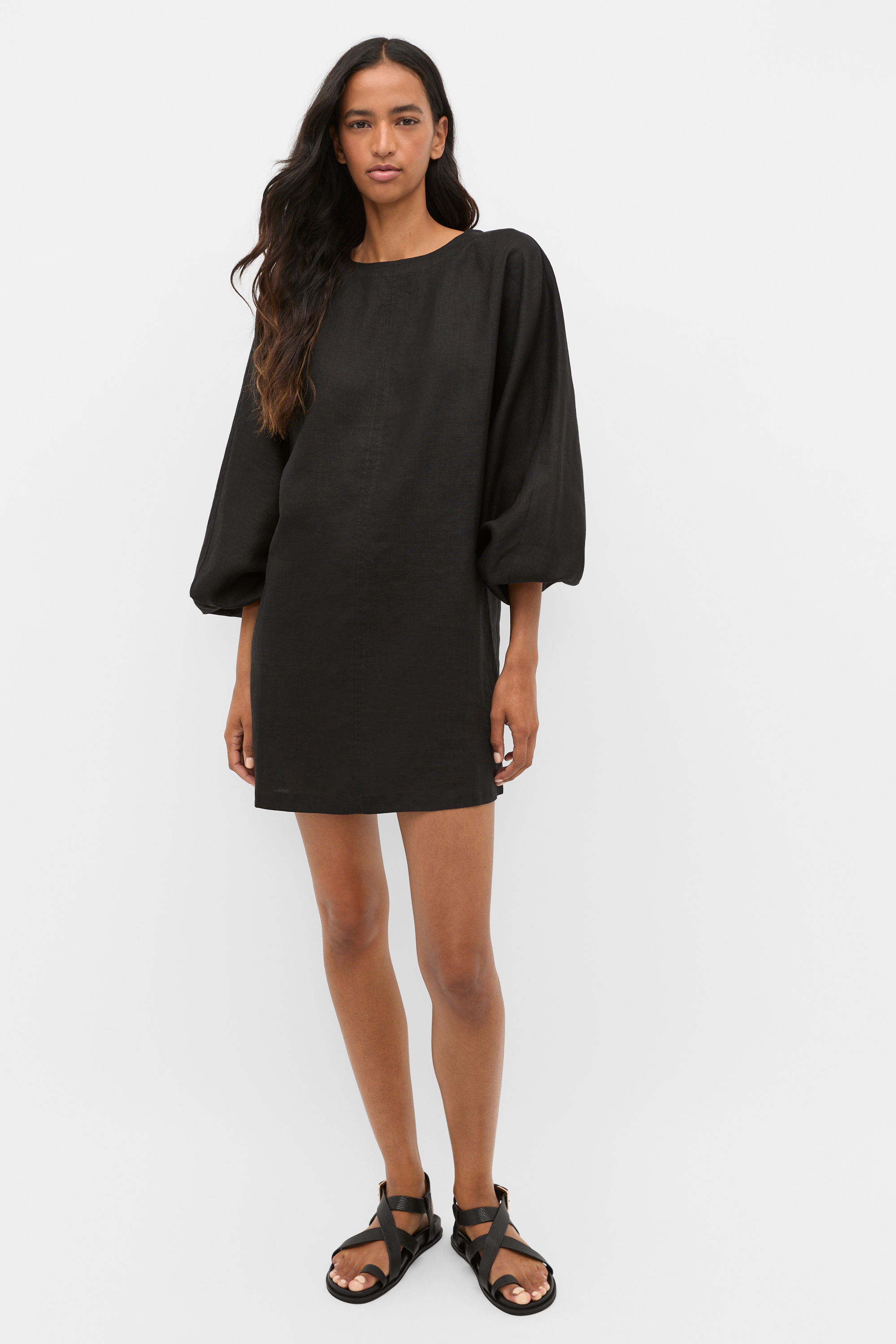This classic design takes the guesswork out of summer style. Crafted in premium linen, it's a versatile dress with a round neck, long blouson sleeves and a chic mini length. Fastens with a button at the back of the neck.
