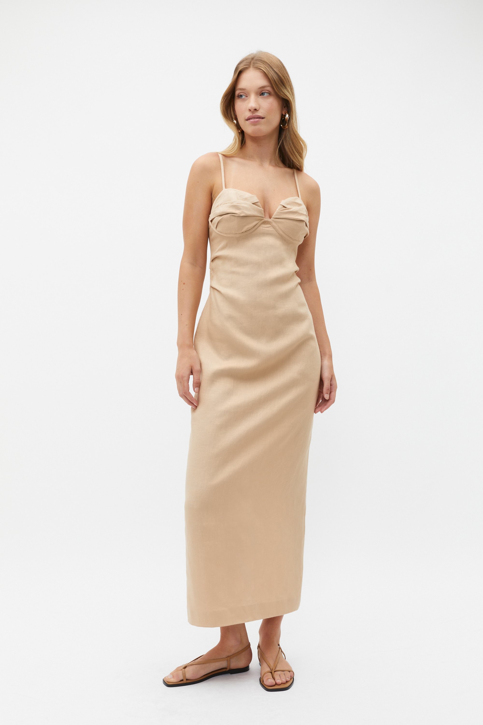 Linen Bustier Midi Dress  Nougat  hi-res Linen Bustier Midi Dress  Nougat  hi-res Linen Bustier Midi Dress  Nougat  hi-res