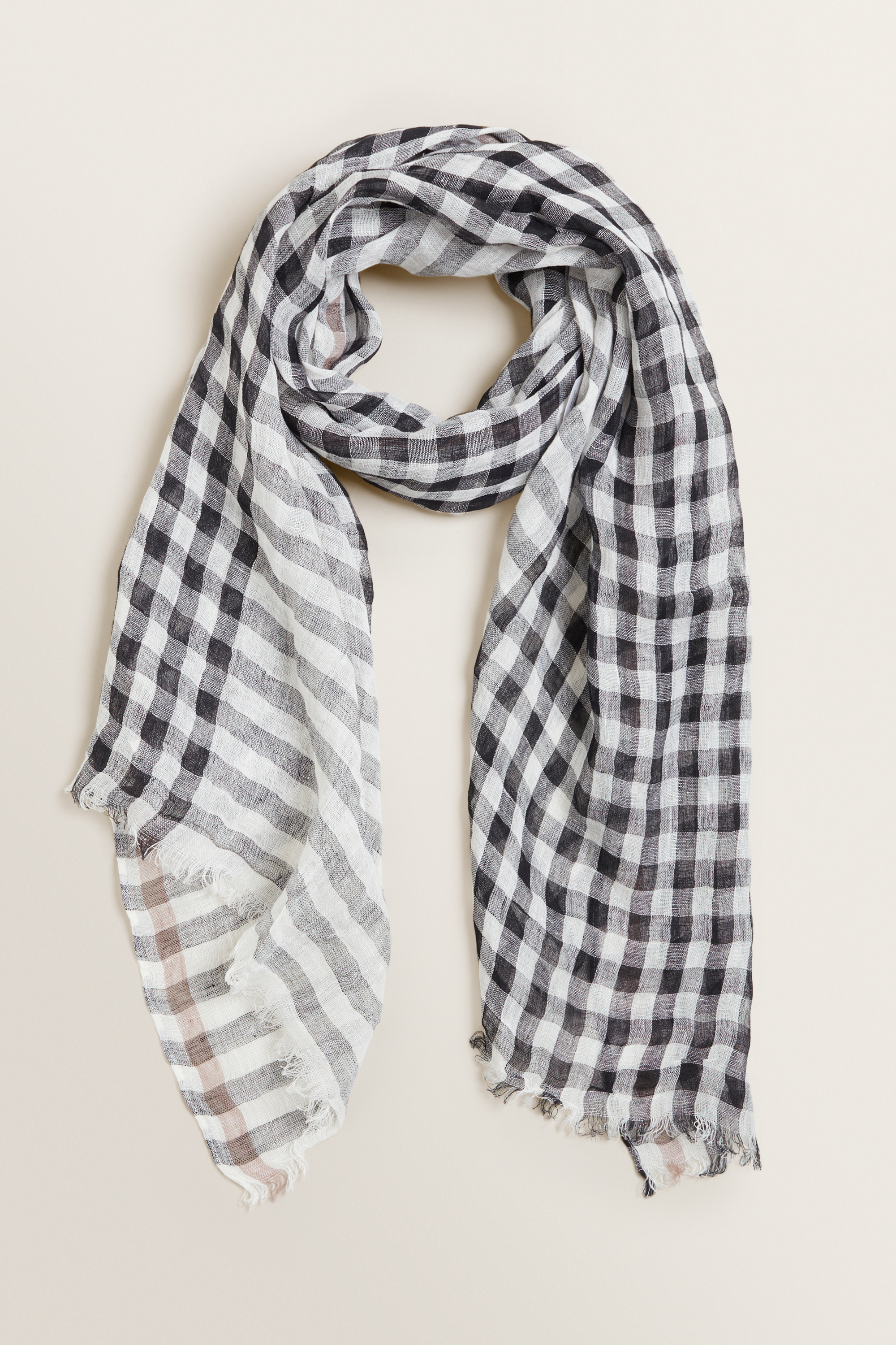 Crafted from 100% linen, this Check Scarf features a gingham print and frayed edging.