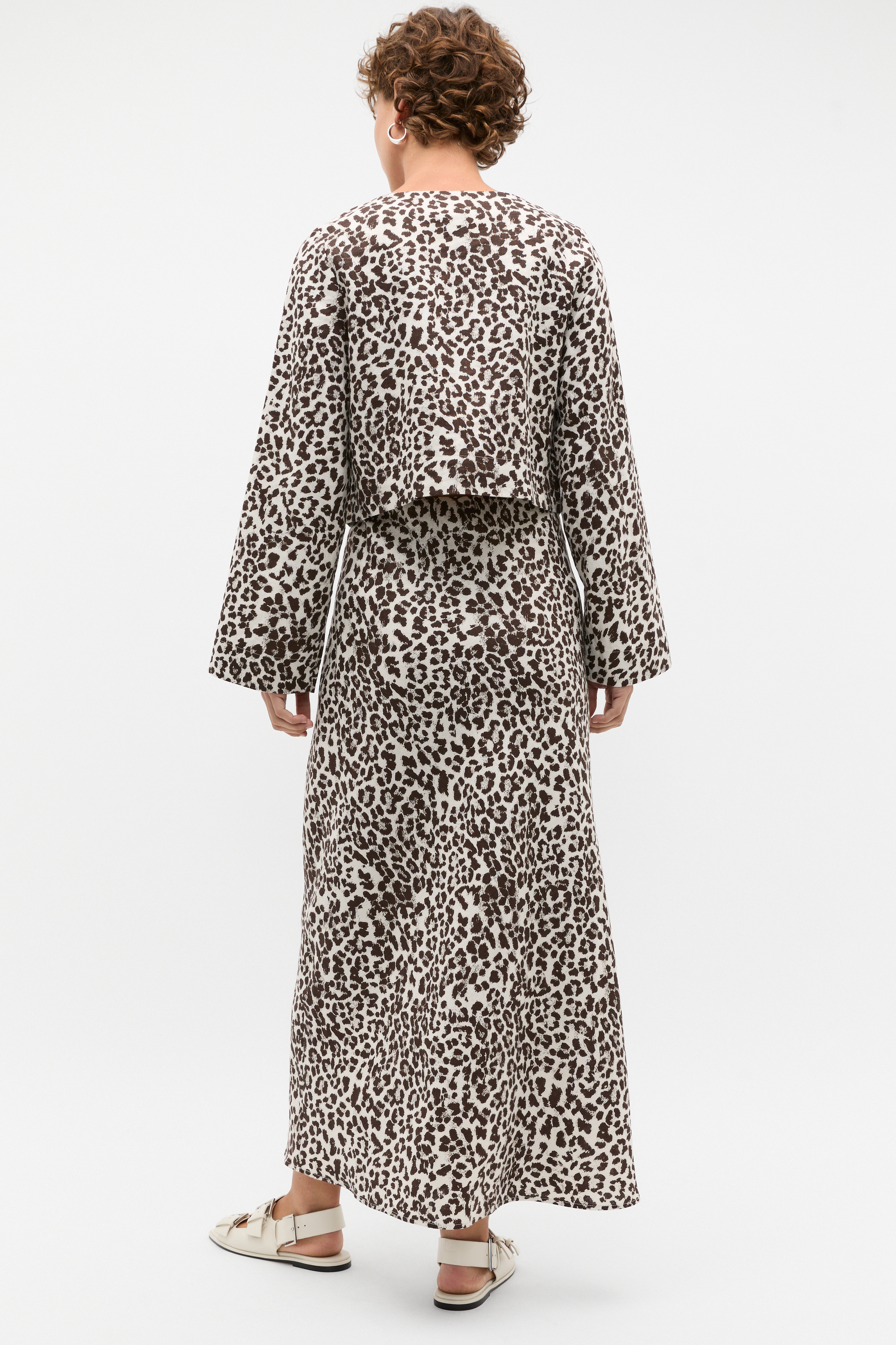 With a chic silhouette, this linen top heroes the print of the season. Crafted in premium linen, it features a square neckline, button front and wide long sleeves. Shop the coordinating animal print pieces for statement head-to-toe dressing.