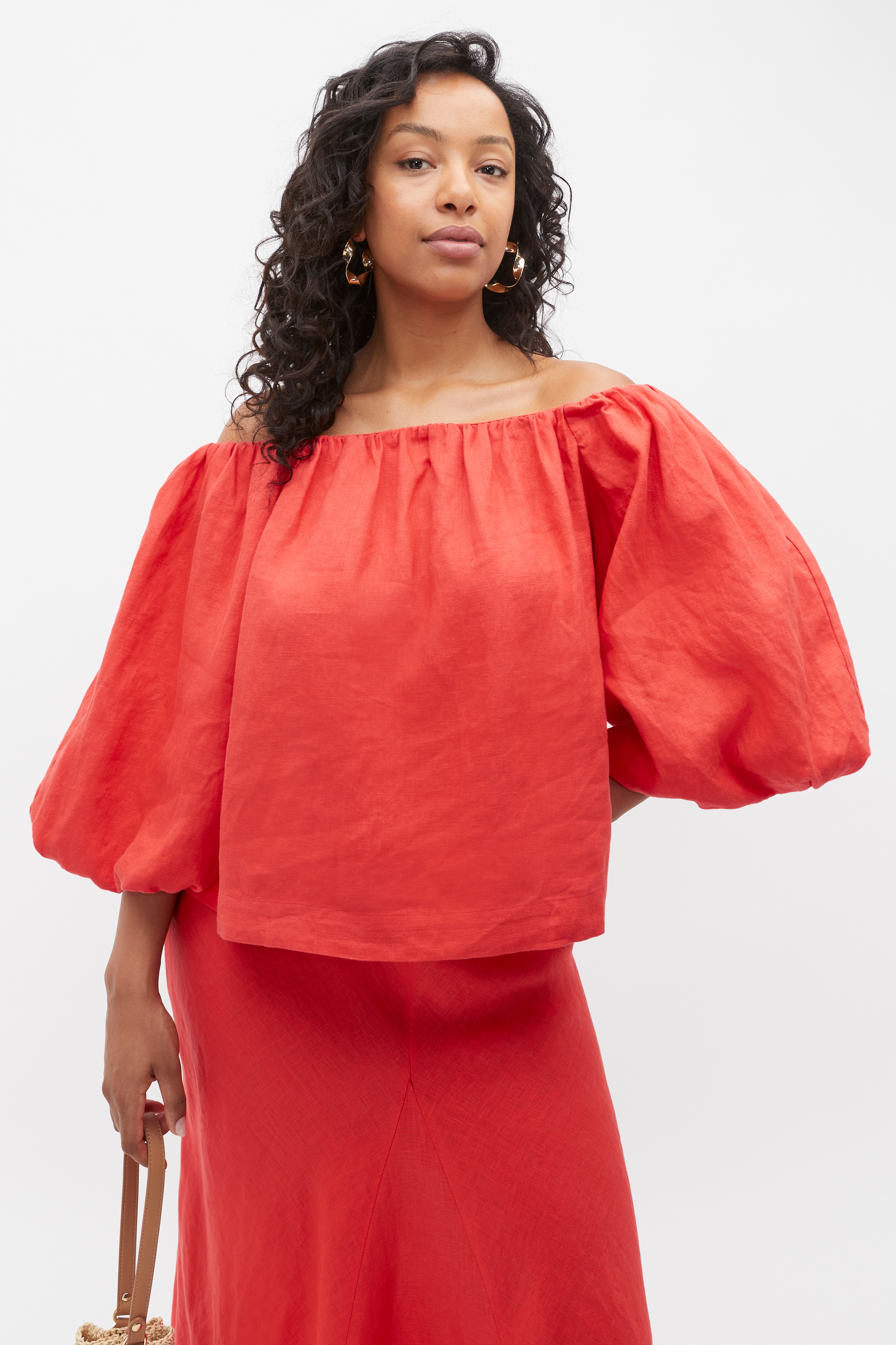 Breezy and elevated, this top is the ideal addition to your casual summer wardrobe. Crafted in premium linen, it features an off-the-shoulder neckline and balloon sleeves with elasticated cuffs in a loose, flowing cut.