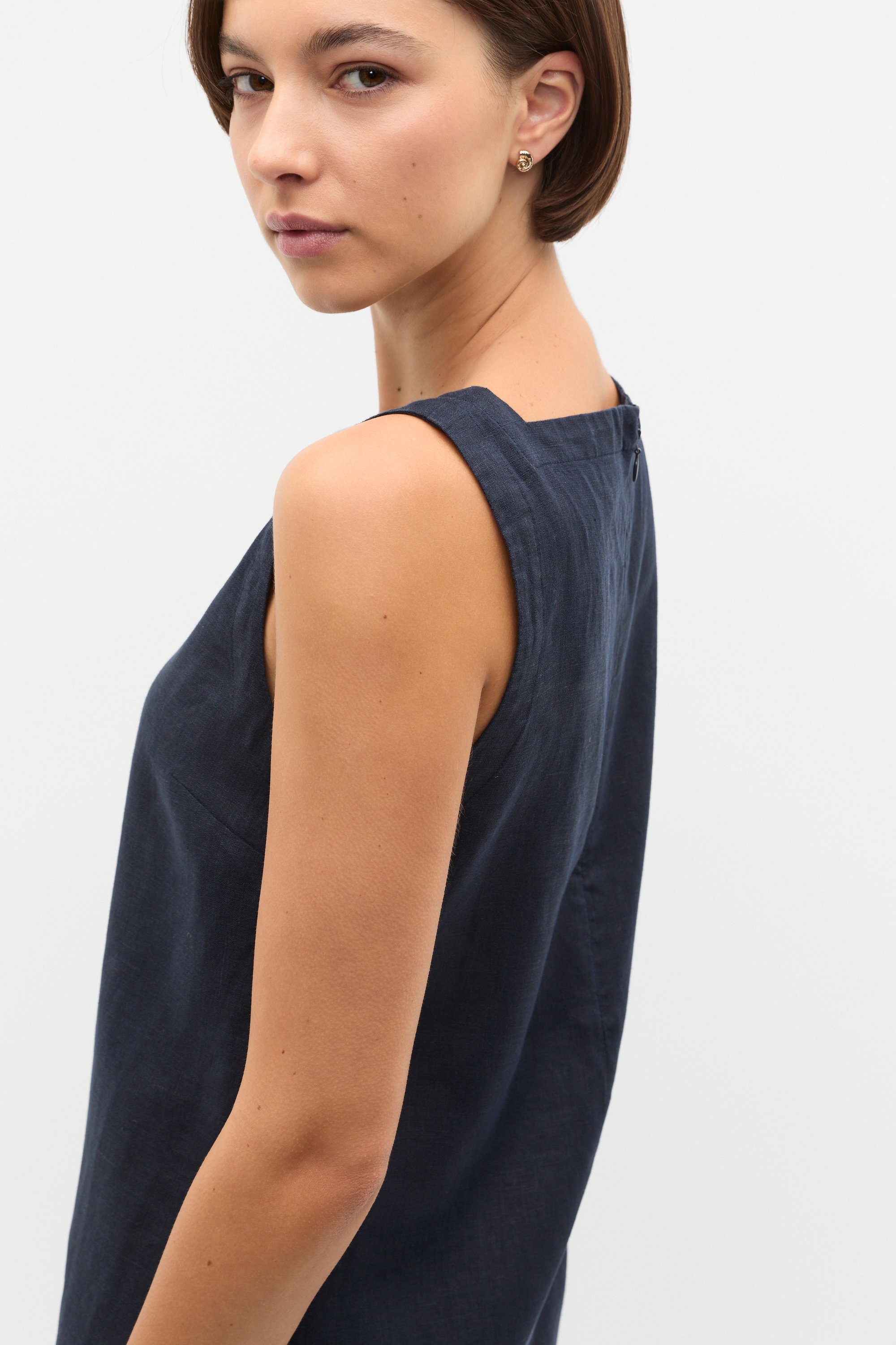This mini dress is an effortlessly chic style for your summer wardrobe. Crafted in premium linen, it features a square neck design with a sleeveless shape and fastens with an invisible zip at the back.