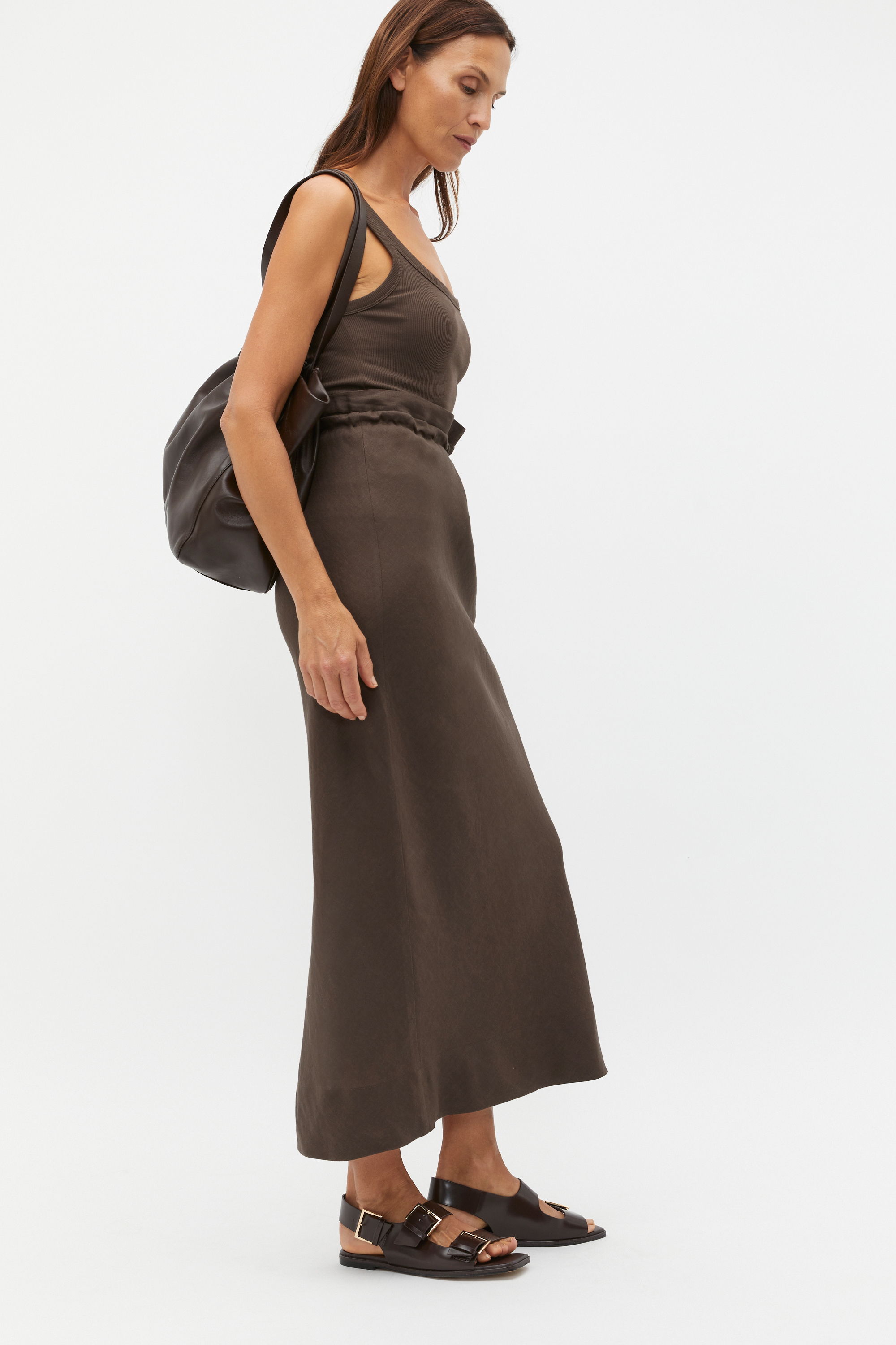 Linen Tie Column Skirt  Dark Espresso  hi-res
