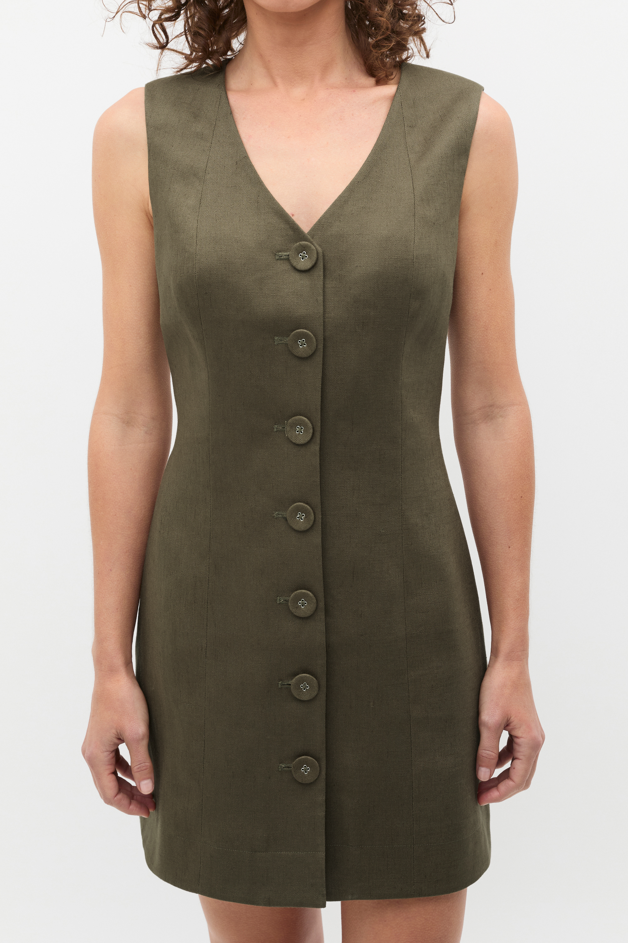 Linen V Neck Button Mini Dress  Olive Leaf  hi-res Linen V Neck Button Mini Dress  Olive Leaf  hi-res Linen V Neck Button Mini Dress  Olive Leaf  hi-res Linen V Neck Button Mini Dress  Olive Leaf  hi-res