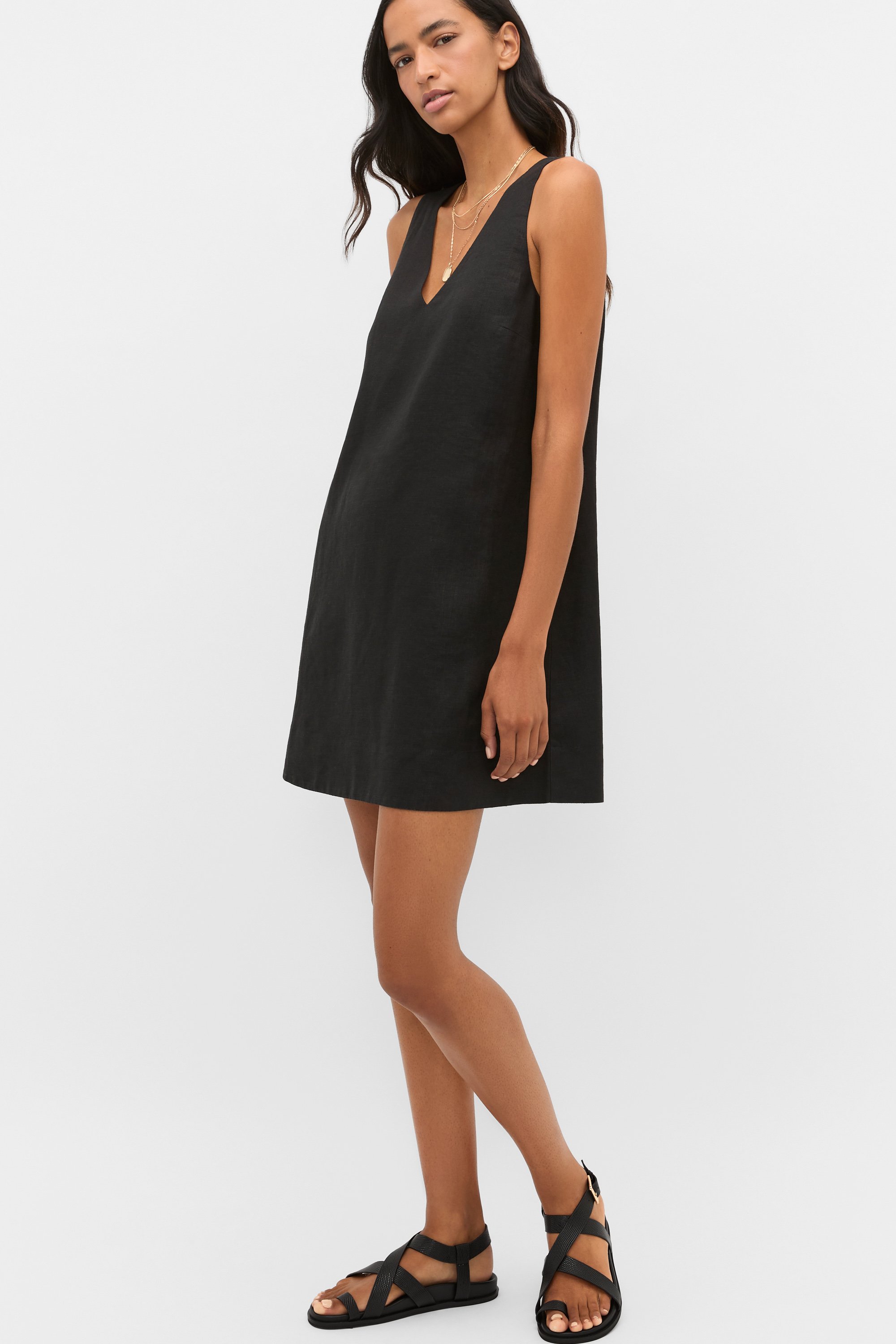 Linen V Neck Mini Dress  Black  hi-res Linen V Neck Mini Dress  Black  hi-res Linen V Neck Mini Dress  Black  hi-res