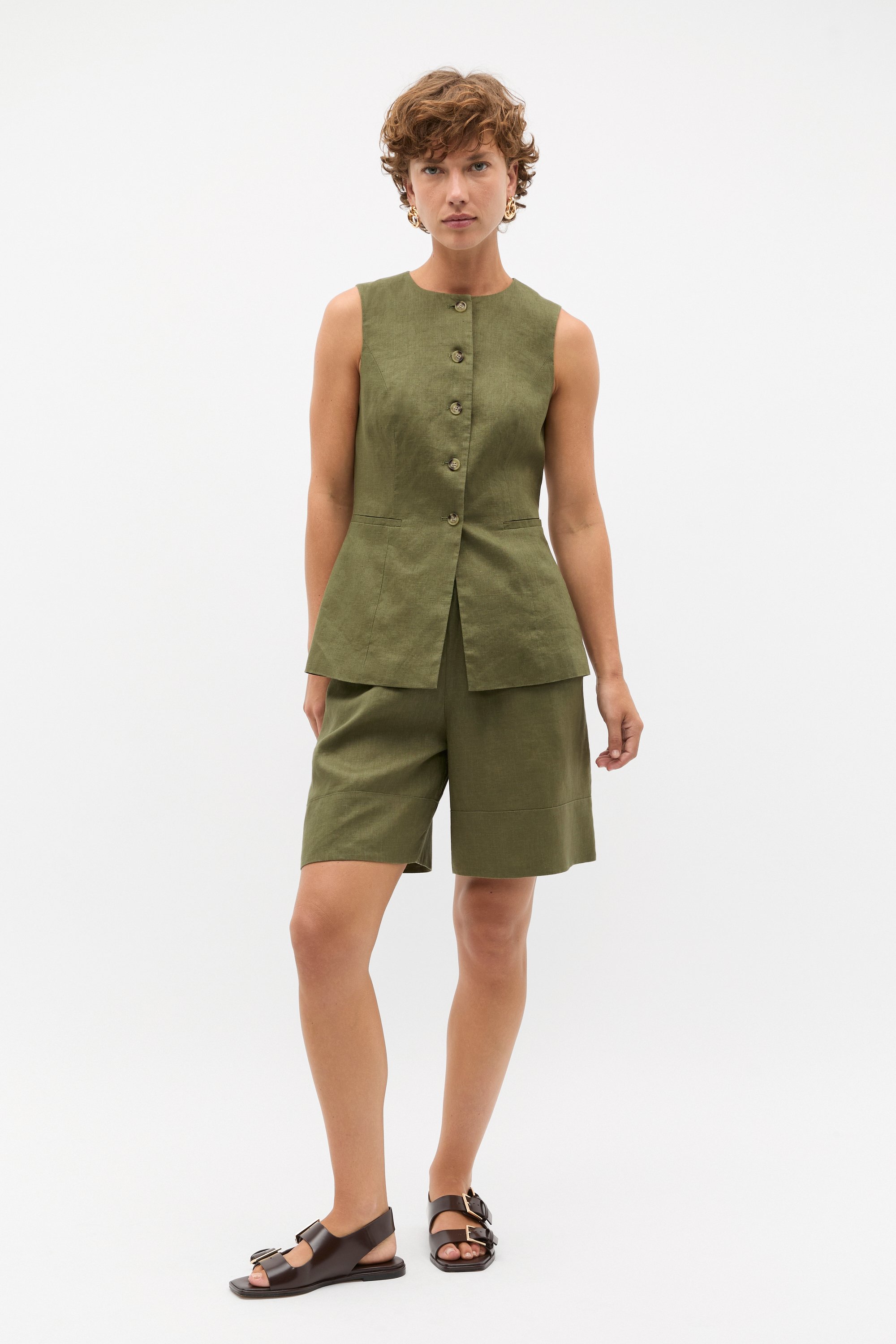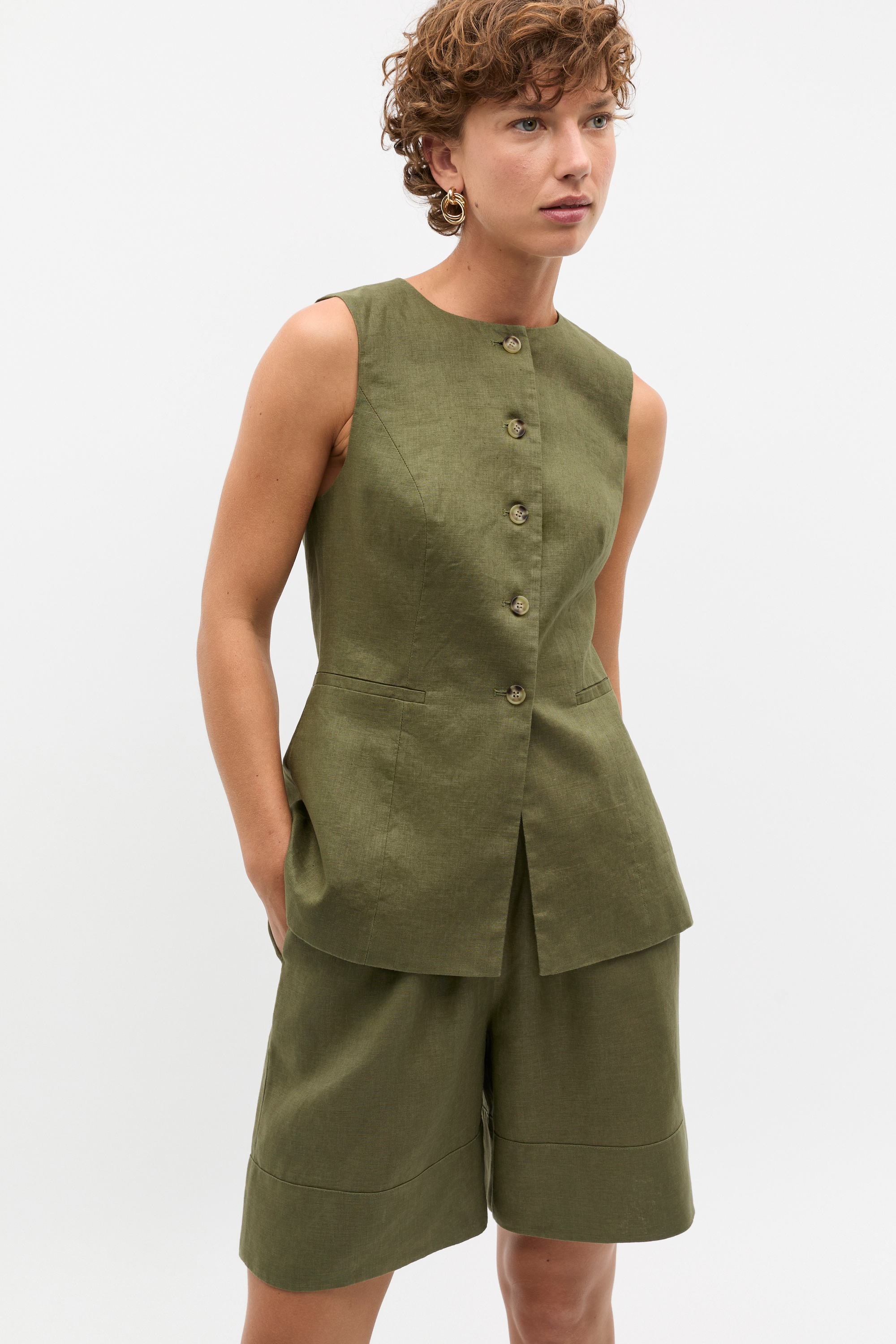 Linen Waisted Button Down Vest  Rainforest  hi-res Linen Waisted Button Down Vest  Rainforest  hi-res Linen Waisted Button Down Vest  Rainforest  hi-res