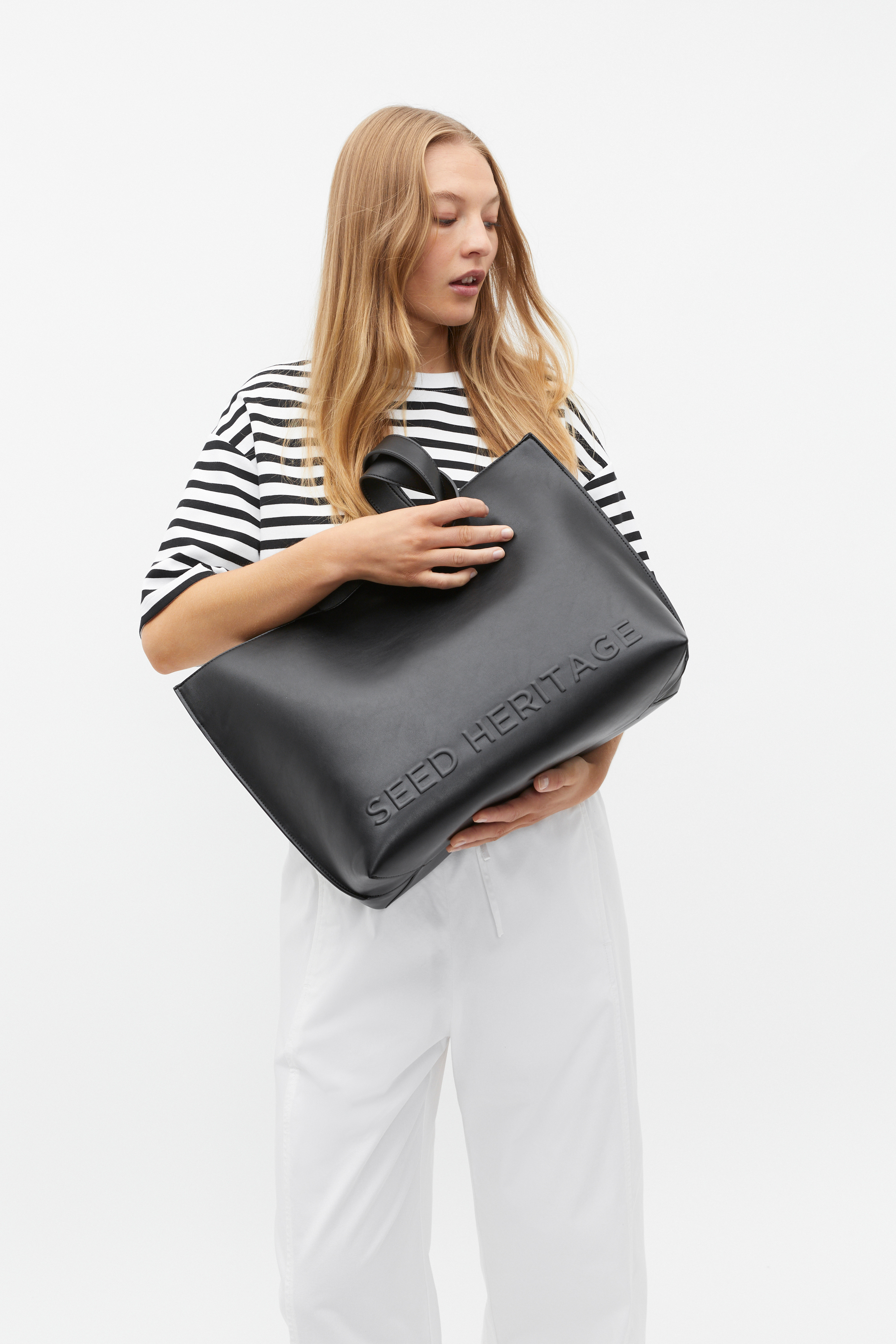 Ideal for carrying anything you might need, this generously sized tote features top handles, an internal pocket, and a Seed Heritage logo. It closes with a clasp.