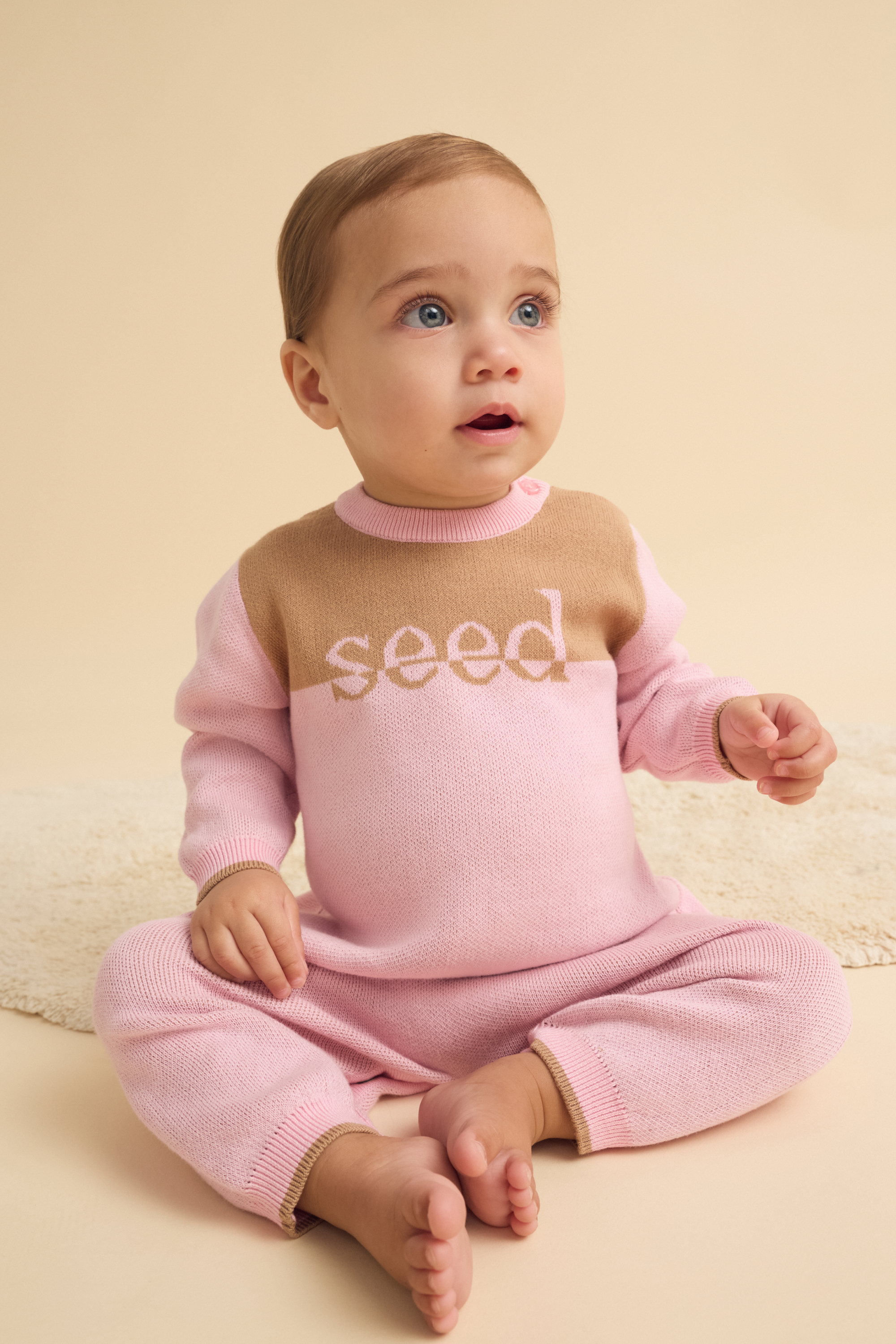 The softest knitted style, this jumpsuit is cosy, sweet and designed for cuddling. Crafted in premium cotton, it features a round neck, long sleeves and ribbed detailing at the cuffs.