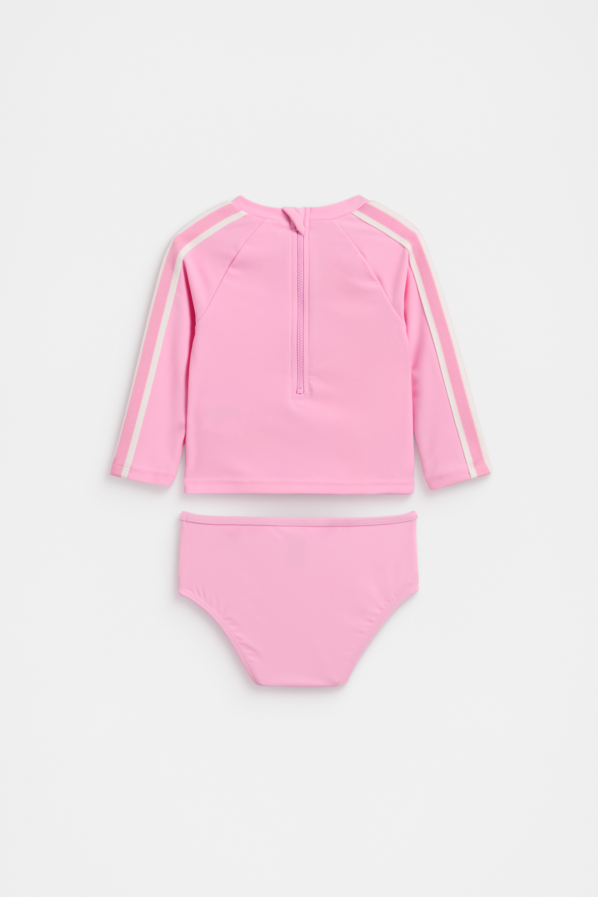 With an adorable retro look, this swim set is perfect for a summer of play in the pool. It's a two-piece style and features a stripe detail on the sleeves, a Seed Heritage logo design and a pair of matching bottoms. Secures with a zip at the back.