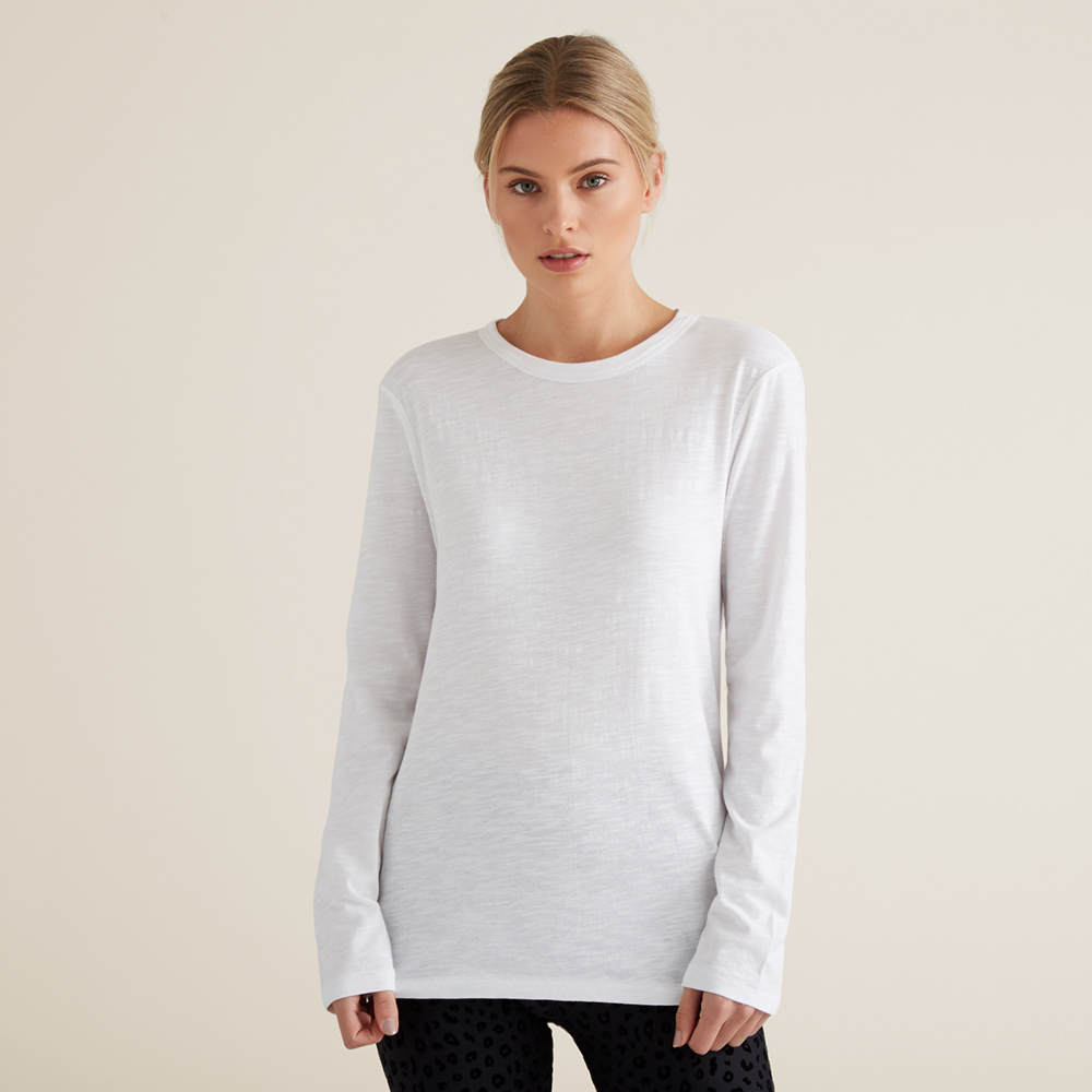 The Long Sleeve Slim Basic Tee is primed for winter training sessions. Its lightweight 100% Cotton jersey is breathable for your next daily workout. It features a long, curved hem with a circle crew neckline. Team the Long Sleeve Slim Basic Tee with Seed Sport Leggings for a polished athleisure look. The Long Sleeve Slim Basic Tee is available in sizes XS through to L. Our model wears a size 8 and is 177cm tall. Care instructions can be found inside of the garment.