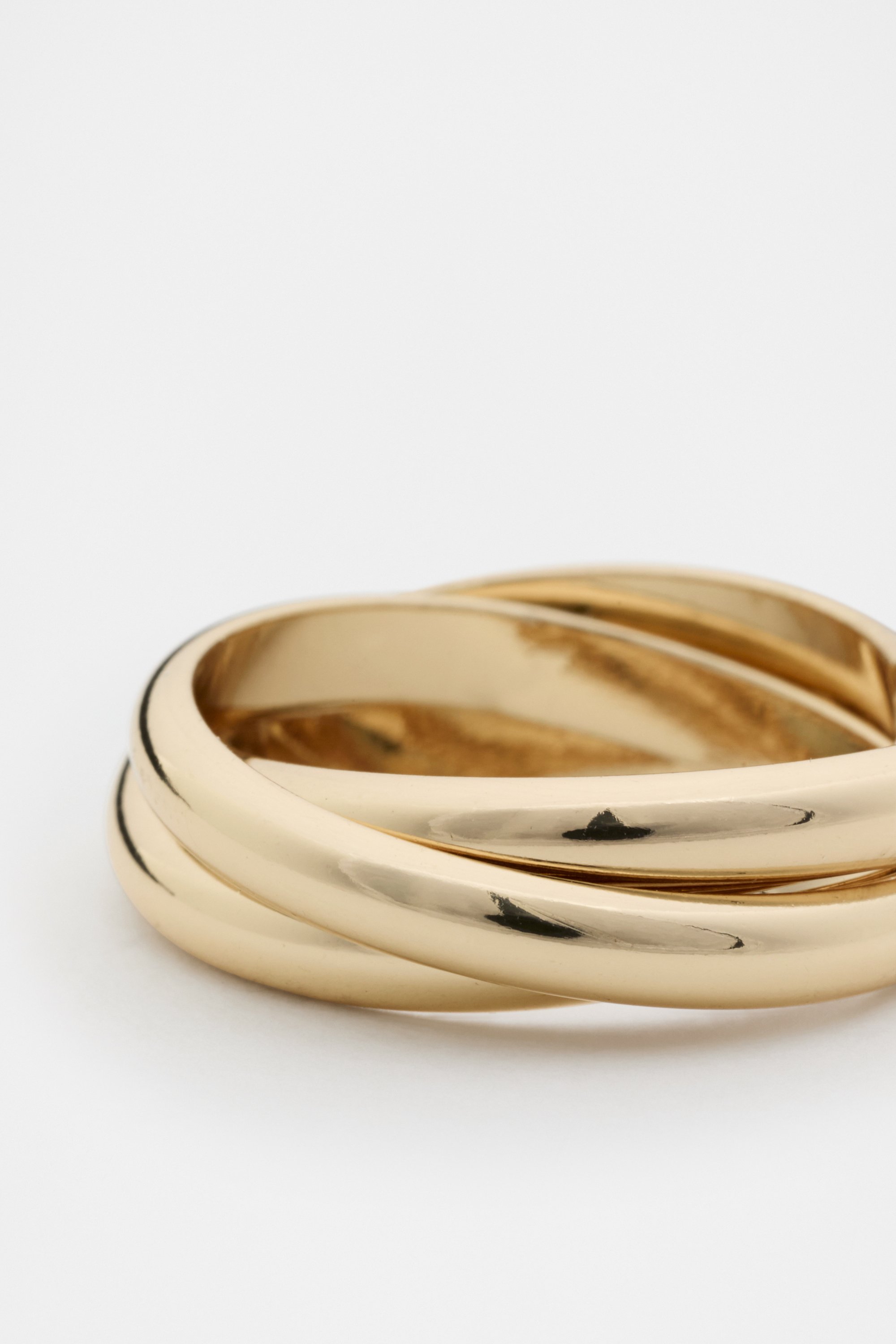 An elegant addition to your collection, this design features three interlooped rings with a high-shine finish. Style with the matching loop earrings for a curated feel. Available in silver or gold to suit any wardrobe.