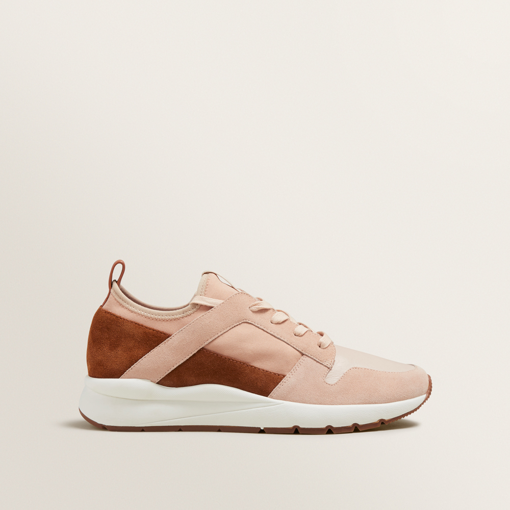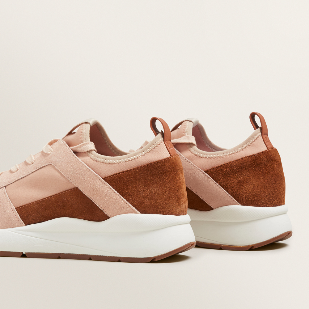 These Maria Leather Sneakers feature a retro colour-block palette of blush and brown hues. It features a chunky sole, lace up closure, pull tab and panelled faux suede patchwork. Made from a leather upper, it is detailed with a rubber sole. This sneaker is sure to add a dynamic aesthetic to any sports-luxe look. This Maria Leather Sneaker is available in sizes 36 to 41.