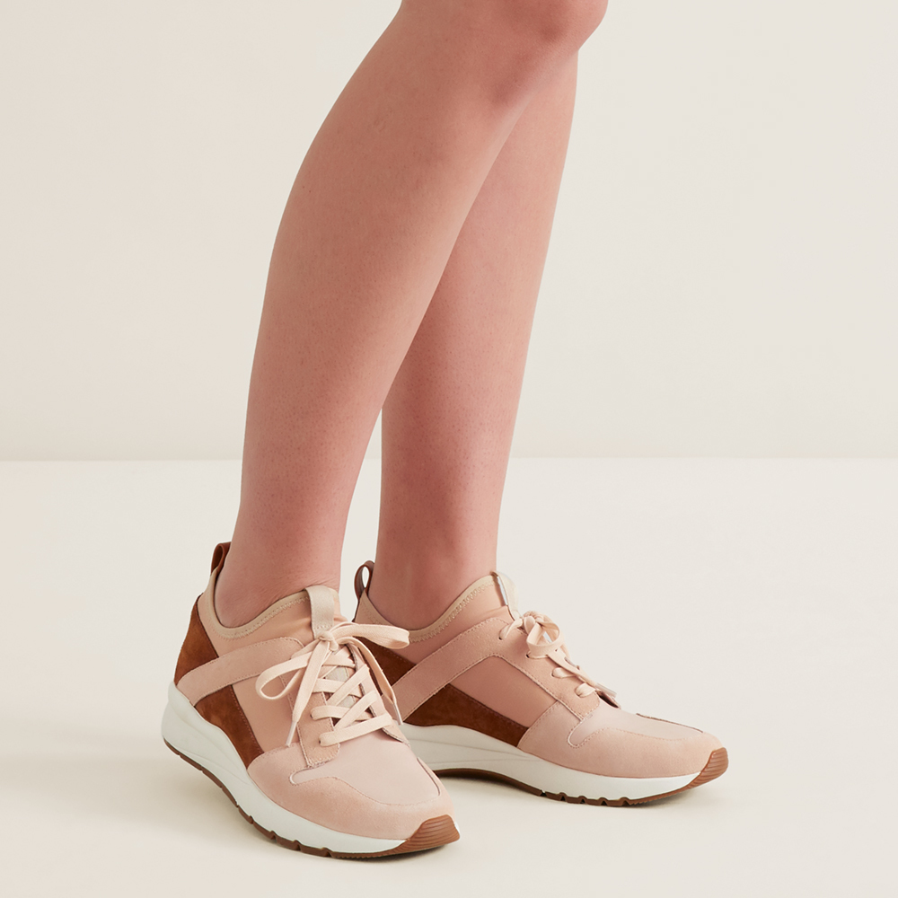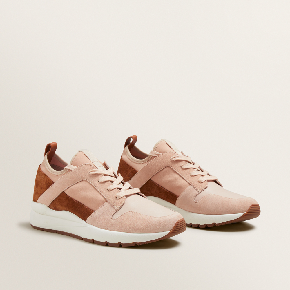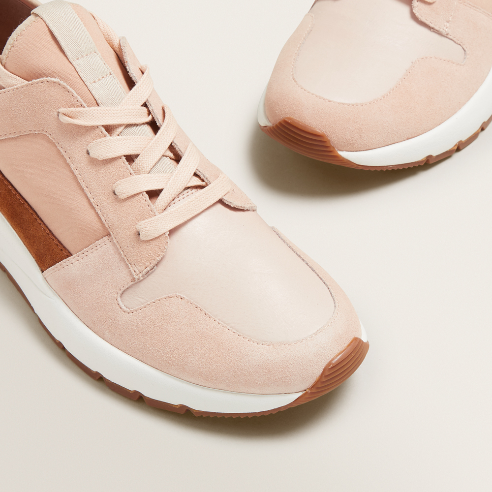 These Maria Leather Sneakers feature a retro colour-block palette of blush and brown hues. It features a chunky sole, lace up closure, pull tab and panelled faux suede patchwork. Made from a leather upper, it is detailed with a rubber sole. This sneaker is sure to add a dynamic aesthetic to any sports-luxe look. This Maria Leather Sneaker is available in sizes 36 to 41.